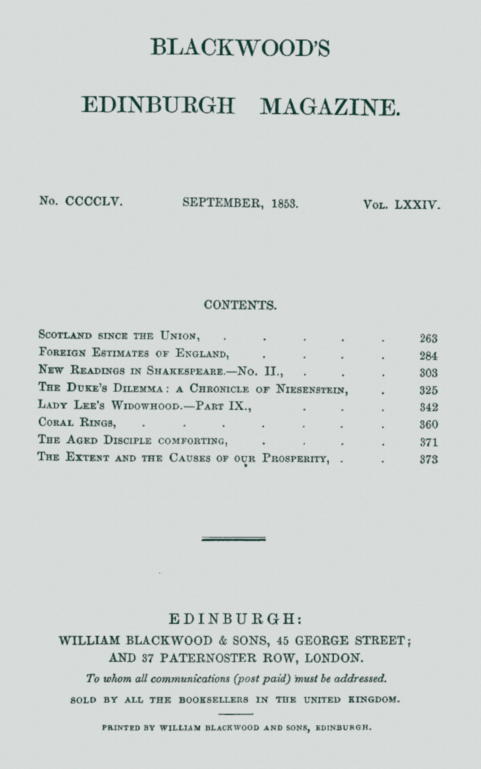 Title: Blackwood's Edinburgh Magazine, Vol. 74, No. 455, September, 1853