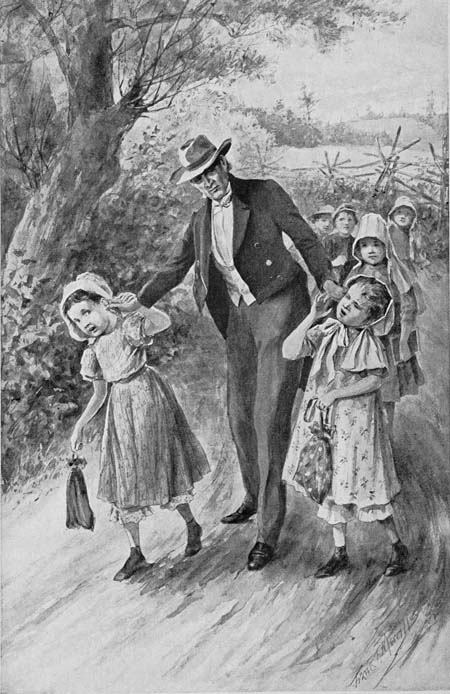 It was an uncommon thing to meet any one, and especially a stranger, on that long two-mile path to school. But it was a wonderful thing to meet such a grand stranger. She dropped a bobbing curtsy, and the gentleman, having crossed, stopped and smiled. He had glittering black eyes, and curly hair and whiskers, glittering teeth and boots, fine clothes, and altogether the look of a “town gentleman.”
