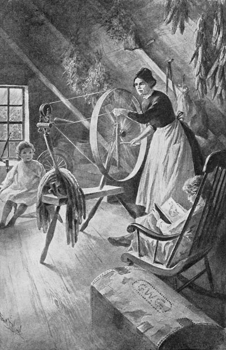“No, you won’t,” cried her mother’s voice from an inner room, making a pause in the monotonous rattle of a loom; and though it was a plaintive voice and not very decided, Tildy was moved by it to get her sun-bonnet and follow the other two. They were making a round of the garden, to gather pinks, hollyhocks, bouncing-betties, bachelor-buttons, and asparagus sprays. Having tied up a bunch apiece, they left the house and began their root-matted and rocky ascent. There were levels [16]above where the woods made a twilight at noon, where ferns crowded to their knees, and some stood as high as their waists. Who could help stopping to inhale that breath which is no plant’s but a fern’s?