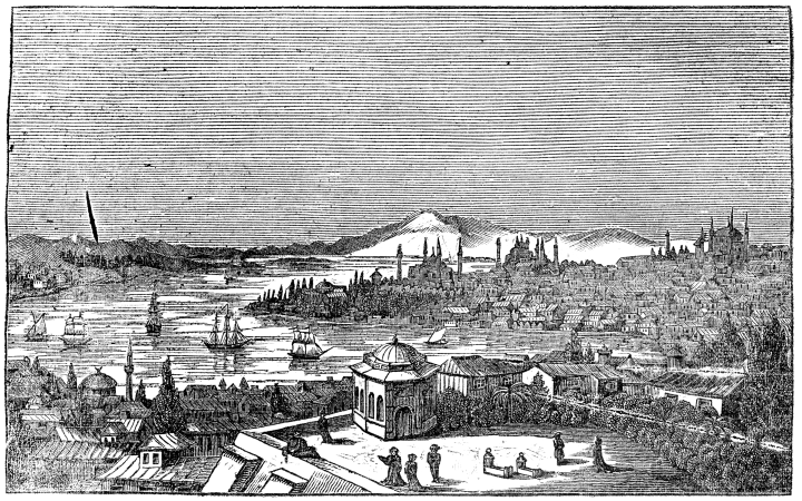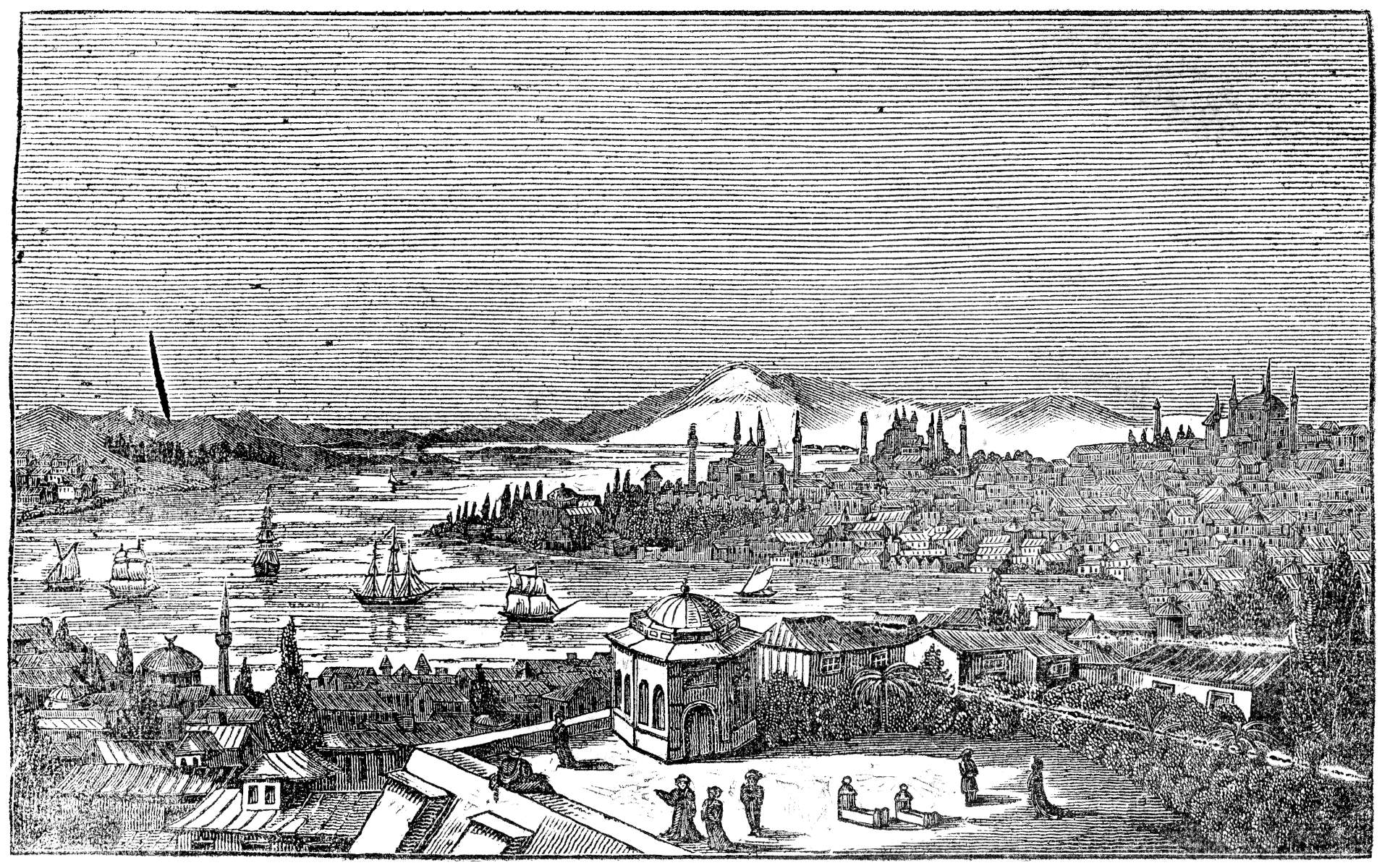 A city was built here by a colony of Lacedemonians as early as the year 660 before Christ, or about a century after the foundation of Rome; but this city only occupied the apex of the triangle, or precisely that space now within the enclosures of the Seraglio. It was called Byzantium. The present immense city, called Constantinopolis, or the city of Constantine, after its founder, was built about the year 330 of our era, by the Roman Emperor Constantine, who thought it the best place for the capital of the world.
