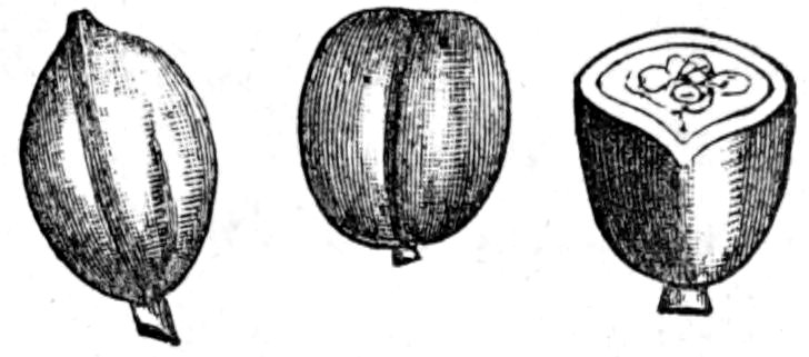 Fig. 133.—Ear Cockles of Wheat; the third shows the eelworm larvæ on its cut surface.