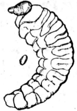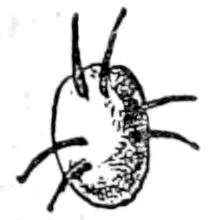 Length of the male about one-twelfth of an inch, of the female one-tenth to one-fifth of an inch (according to the size of the galls in which the eelworms develop). The wheat eelworm is the cause of “ear cockles,” also known as “peppercorns” and “purples.” In several parts of the ear short thick dark brown galls (Fig. 133), resembling the seeds of corn-cockle, are found instead of wheat grains. Inside the thick brown shell there is a yellowish white mass, containing hundreds or even thousands of eelworm larvæ (one thirty-first to one twenty-seventh of an inch long). These are quite dry and rigid, but gradually revive on moistening, even if the black galls have remained twenty years in the dried-up condition. When the wheat is ripe the dark-walled galls are gathered in with the crop, and in many cases are sown again with the sound grains. The brown shell then decays, and the eelworm larvæ leave the gall, travelling to a neighbouring wheat seedling, where they live between leaf-sheath and haulm, also penetrating into the terminal bud. The haulm of a wheat plant infested by many eelworms remains relatively short, the leaves are often sharply bent and have wavy margins. Wheat plants thus infested closely resemble rye plants diseased in a similar way, but are much less deformed. This is because the wheat eelworms do not reproduce till they reach the ear, and there is consequently only one generation per year, while several generations of eelworms succeed one another in the same rye plant. The eelworms quickly travel from all parts of the plants into the ears, and get into the rudiments of the flowers, causing them to swell up like bladders, and their walls to become first dark green, and then dark brown. Sixteen to twenty eelworms are present in the lowest flowers of the ear, ten to twelve in those higher up (and therefore smaller), and four to six in the topmost (smallest) ones. Soon after entering the flowers the eelworms 226become sexually mature, and lay eggs (600 to 1600), from which are developed the larvæ that inhabit later on the cockle-seed like galls. The disease is known in England, Germany, France, and Italy, and is especially harmful in Saxony, where it sometimes attacks a quarter of the wheat crop. Remedies: Either there should be no ear cockles in the seed corn, or else the eelworms should be destroyed in them. The infested grain may either be put through a sieve, or else soaked for twenty-four hours in weak sulphuric acid (one pint strong acid to thirty-three gallons of water), when many of the galls float and can be skimmed off, while the eelworms are killed in those which sink.