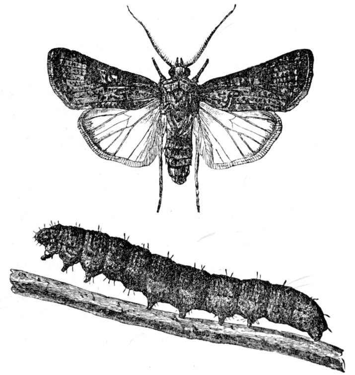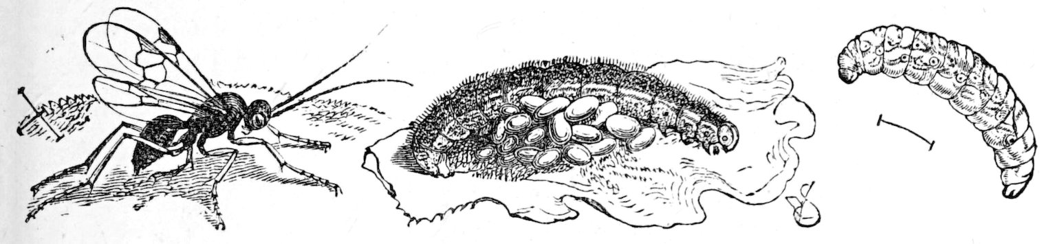 The life of the grey field slug is very dependent on moisture. During dry weather it rolls itself up and hides in the ground, under a stone, or in some such place, where it is protected as much as possible from completely drying up. At such times it only comes to the surface to feed at night, but does so during the day as well when the weather is wet. The field slug is very destructive in fields and gardens, but this is only the case in those years the great dampness of which is specially favourable to its continuance and multiplication. The glassy eggs are laid in heaps containing from six to fifteen, in damp concealed spots in the ground, under moss, grass, etc., during August, September, and even October. A single slug may lay as many as four hundred. The eggs are able to withstand extreme cold and extreme dryness, and moisture makes them swell out again if they have shrivelled 250up. In warm, damp weather the young slugs (which are one-twelfth of an inch long in the contracted, and two-fifths of an inch in the extended condition) hatch out in three or four weeks. Cold weather retards the development. If the weather is favourable, and suitable food is not wanting, they are often almost full-grown in six weeks’ time. It is clear, from the foregoing, that in damp years the slugs may appear in very large numbers, especially in autumn; but it may also happen that most of the young slugs hatch out the following spring, in which case the greatest amount of damage will be done then. A snail may live several years, spending the dry days and the whole of the cold season in the ground or some other sheltered place. These slugs devour by preference delicate leaves and stems; young grain, young clover plants, leaves of rape, cabbage, turnips, and lettuce are their favourite food, also fallen fruit, strawberries, cucumbers, and vegetable marrows. Preventive Measures: Protection of their natural enemies: pigs, moles, shrews, ducks, fowls, pigeons, rooks, starlings, toads. Draining the soil, as slugs flourish most where it is moist. Sowing the winter grain as soon as possible, as the young plants will then probably have attained a fair size when the slugs appear in force. Remedies: Collection. The slugs readily crawl on to bits of cucumber or turnip which are thrown down, and can then easily be collected, or killed with quicklime. All substances which readily absorb water kill slugs by taking from them the moisture which is necessary for their existence. Cooking-salt, unslaked and slaked lime may be employed for this purpose. It seems to me most convenient to use freshly slaked lime, ten to twelve bushels per acre. Since the lime can only kill the slugs when it comes into contact with their skins, it must always be strewn on the land at a time when they are on the crawl, not later than 8 a.m., and only in dry weather. As soon as the 251slugs are touched by the lime they begin to give out a great deal of slime, and many of them, especially the younger ones, are killed and become black. Very many of the older slugs, however, escape death, since the tenacious slime they give out, when the lime touches them, forms a continuous coat like a cocoon, out of which the slug creeps, now much poorer in water. It is therefore a good plan to strew powdered lime over a slug-infested field twice in succession, leaving an interval of some ten or fifteen minutes. The second strewing brings the lime into contact with those slugs which have just crawled out of their slimy investment in a desiccated condition. They are unable to form a second coating of slime, and if touched for this second time with even the smallest particles of lime they at once contract and die. If a double strewing is repeated very early on the following morning, no slugs will be left alive on the field so treated.
