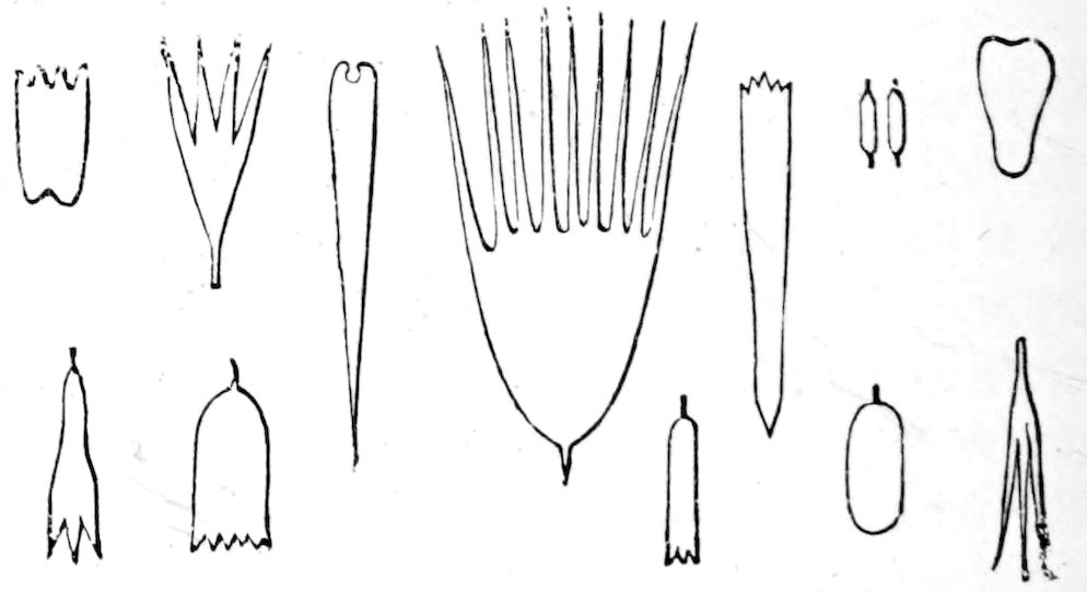 Almost all zoophytes live in the sea, but some few in fresh water; none are important agriculturally. The following belong to this sub-kingdom: 1. The Hydroid Zoophytes (Hydrozoa), including the medusæ of the North Sea, many of which are the sexual stage in the life history of fixed asexual polypes. The common Freshwater Polypes (Hydra viridis, fusca, etc.). 2. The Flower Polypes (Anthozoa), to which 255belong Red Coral (Corallium rubrum), and the reef-building corals (Astræa, Mæandrina, etc.). 3. The Sponges (Porifera), which are usually considered cœlenterates, though they possess no nettling organs (Freshwater Sponge = Spongilla, Bath Sponge = Euspongia officinalis).