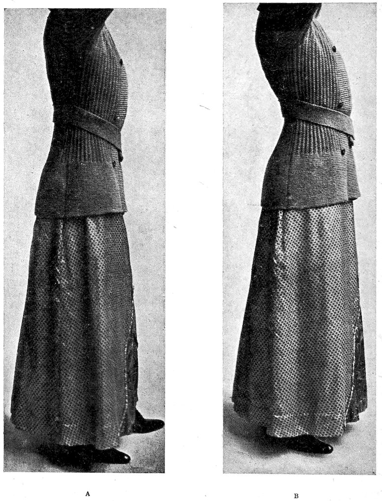 The use of bandages or corsets is to be condemned as treatment in protruding abdomen instead of the adoption of practical means to remove the cause. Such support to the abdominal wall is artificial and harmful, since it tends to make the muscles more flaccid. The respiratory mechanism should be re-educated, for this would mean a re-education or strengthening of the supports Nature has supplied. In other words, the sinking above and below the clavicles and the undue hollowing of the lumbar spine—the great factors in the direct causation of the protrusion of the abdomen—are removed, and a normal condition of the abdominal muscles established. This means a very decided improvement in the figure and general health.