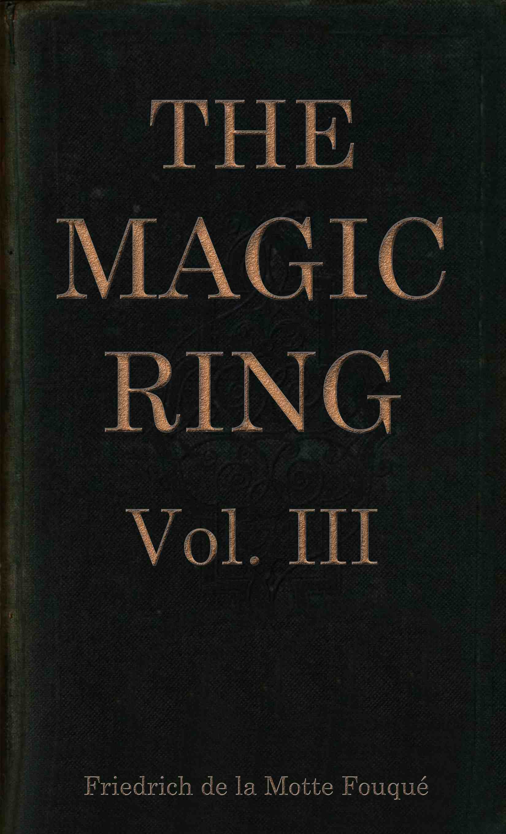 At length,—“Oh, may I be forgiven!” said she, “dearest uncle, that I have not approached you with my wonted respectful obeisance, but have appeared here as a strange lady of high degree, instead of your own humble niece, Bertha von Lichtenried. But, indeed, until this moment I was not Bertha, but the ambassadress of our holy patriarch, the Pope in Rome. To him there appeared, in a nightly vision, all the strange phantoms and wondrous adventures which hung over your house on account of the Magic Ring. So I have hastened hither straightway with Christophorus; only, having heard on the way of my dear brother Sir Heerdegen’s death, I turned out of the road, in order that I might, at the shrine of a renowned saint, pray with more energy for the repose of his soul. Not, however, till the Magic Ring was destroyed (such were the commands of the holy father) durst I make myself known, either by word or token, to those whom I most loved in the world, in order that earthly affections might not disturb my thoughts from the divine mission on which I had been sent. For this reason it was that I passed so silently from the chapel near which you had encamped,—I speak now to you, dearest Lady Hildiridur.” Thereupon, falling into the arms of her former kind friend and instructress, the benevolent Druda, she hid her blushing cheeks under the long green veil; for with these last words she had involuntarily turned her eyes towards her old playmate Sir Otto. At that moment Christophorus came up, and proffered his hand to the young Knight of Trautwangen, saying,—“Welcome, brother! by that name it rejoiceth my heart that I can address a noble youth, whose valiant deeds are already known from the north pole to the south, over all the wide world. But, as through those years when I bore the name of the grand emir Nurreddin, it was said of me, that I knew better how to dispense my largesses and gifts than any other prince of Asia or Europe, so shalt thou too, my brave German brother, learn, even at our first meeting, that I have not forgotten what belongs to the character that I had thus won. Know then, that the heart of this beautiful damsel beats for thee alone, and thou art free to woo her for thy bride.” With these words he led Sir Otto towards Bertha, who remained still with her face hidden in Hildiridur’s long veil; and, with one knee on the ground, the knight addressed himself to the Druda, and said, “Dearest mother, speak for me! I am indeed unworthy of her forgiveness.” Hildiridur then placed the unresisting hand of Bertha in that of her first lover; and Bertha, kneeling beside him, said, “If thy father, dearest Otto, will bestow on us his blessing!”—Hearing these words, the old hero laid his hands on their heads in token of consent; but he could not speak; for, as he looked on them in their youth and gladness, his heart swelled in his bosom, and words could not then have expressed his emotion.
