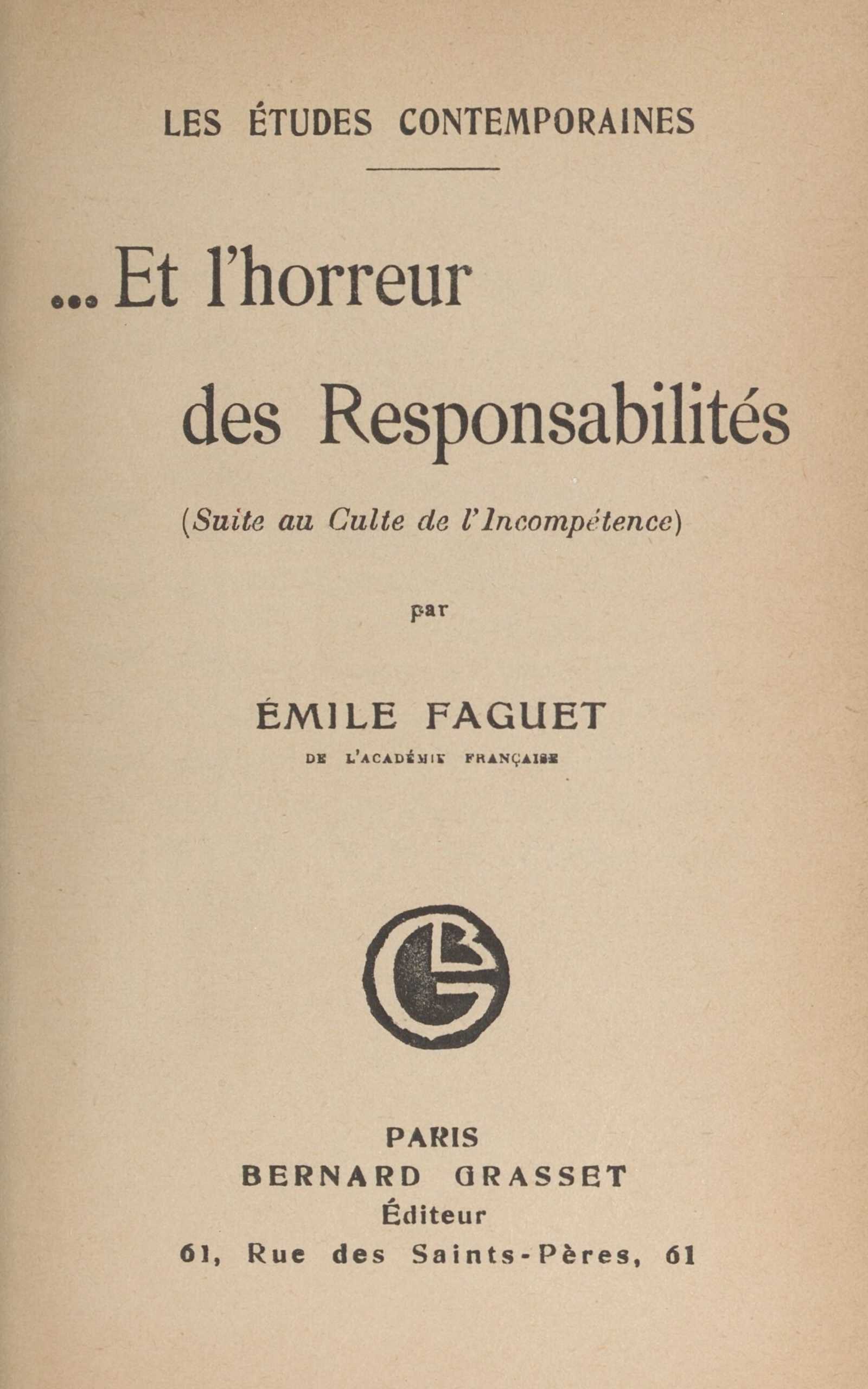 *** START OF THE PROJECT GUTENBERG EBOOK ... ET L'HORREUR DES RESPONSABILITÉS (SUITE AU CULTE DE L'INCOMPÉTENCE) ***