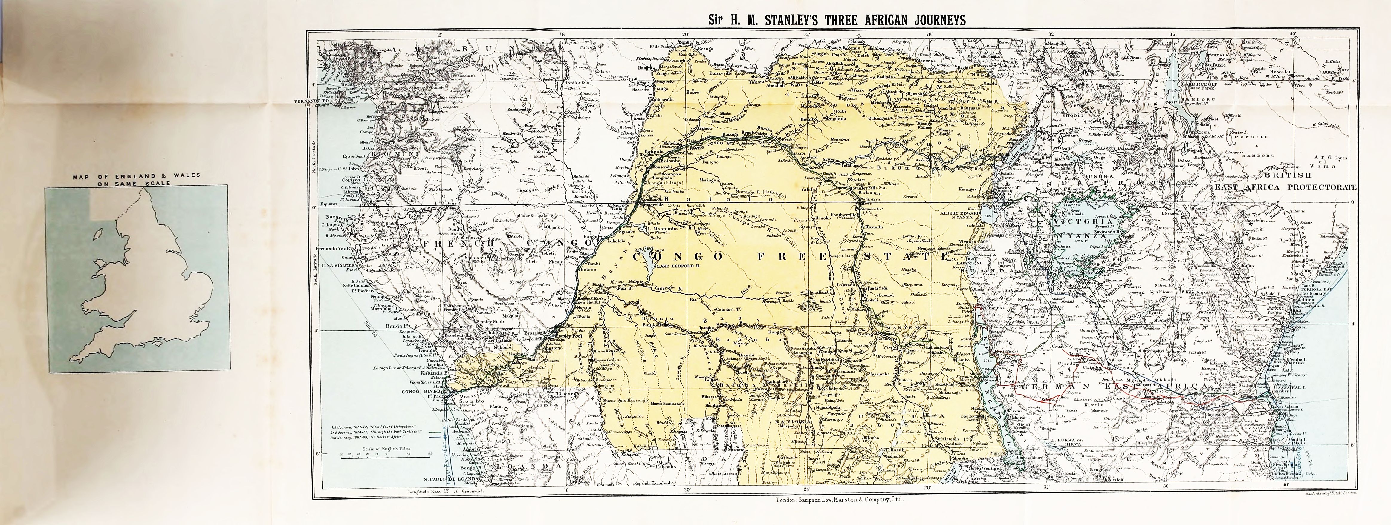Finally, I would draw attention to the map of Africa placed at the end of this volume: Stanley carefully superintended the making of it by the great map-maker, Mr. John Bolton, at Messrs. Stanford’s. It was Mr. Bolton’s suggestion that I should put the small outline map of England beside it to indicate, by comparison, the relative size of that portion of Africa which is included in the larger map.