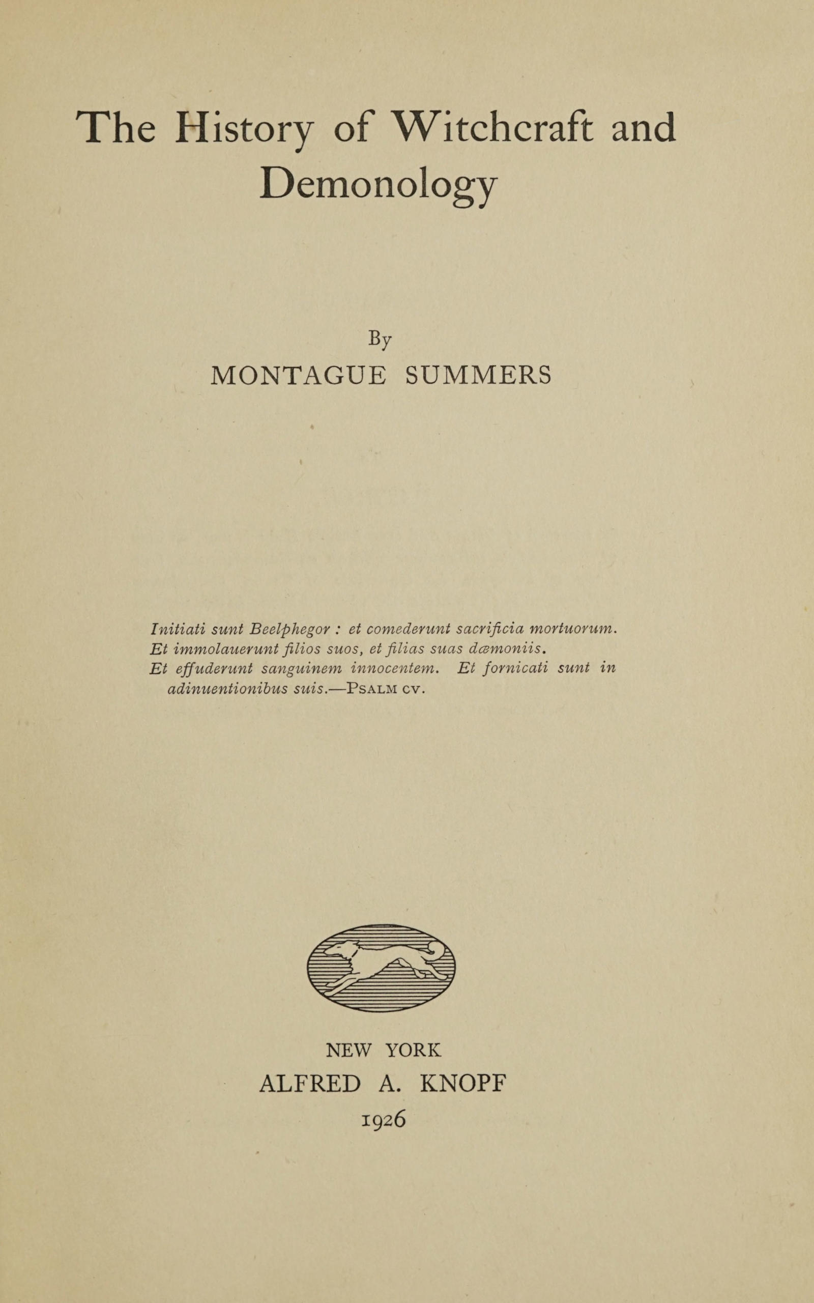 It is a surprising fact that amongst English writers Witchcraft in Europe has not of recent years received anything like adequate attention from serious students of history, who strangely fail to recognize the importance of this tragic belief both as a political and a social factor. Magic, the genesis of magical cults and ceremonies, the ritual of primitive peoples, traditional superstitions, and their ancillary lore, have been made the subject of vast and erudite studies, mostly from an anthropological and folk-loristic point of view, but the darker side of the subject, the history of Satanism, seems hardly to have been attempted.