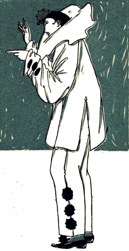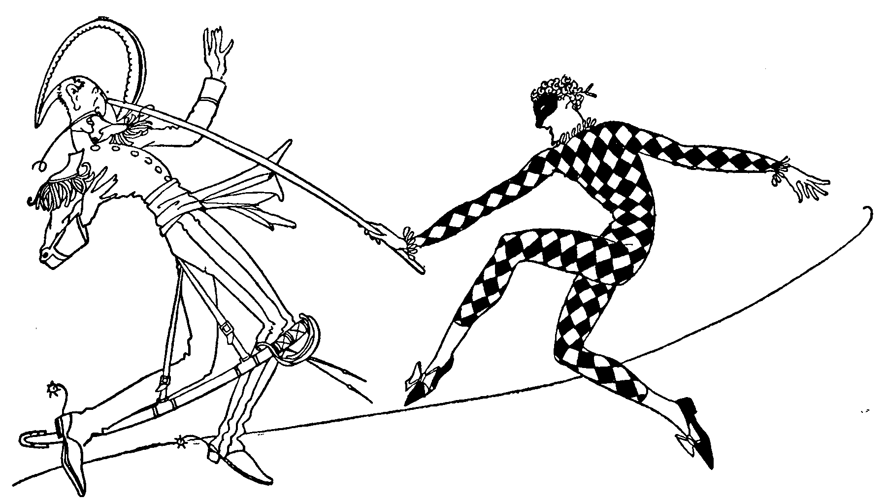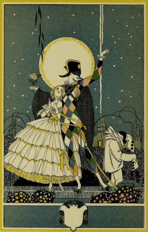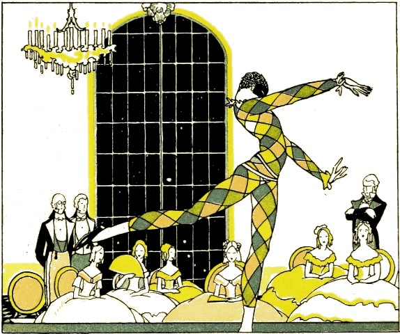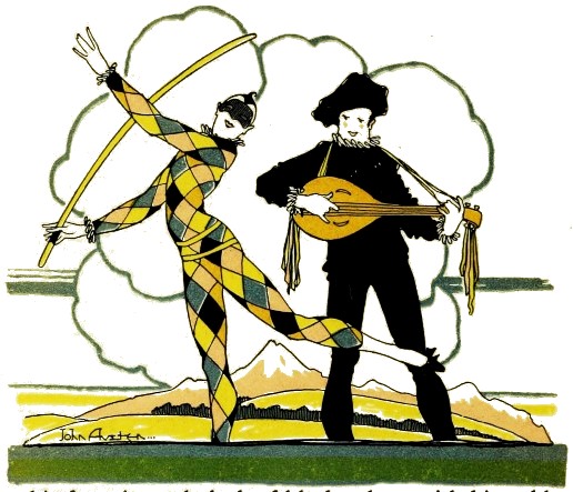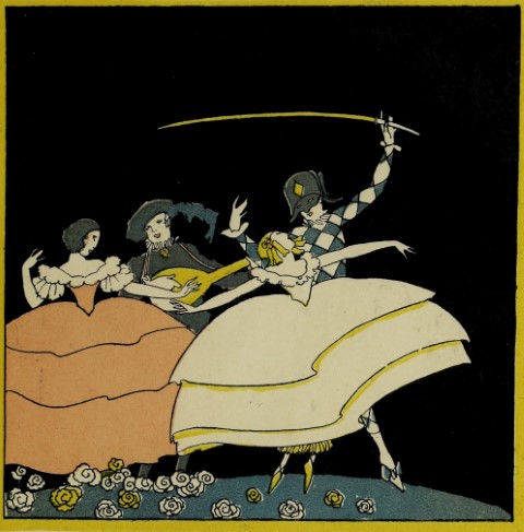 The very first thing that Harlequin did when he and Columbine were fairly out of Venice was to strip off Lelio’s grand clothes and throw them into a ditch. Seeing him once more in the well-known suit of many colours Columbine laughed for joy.
