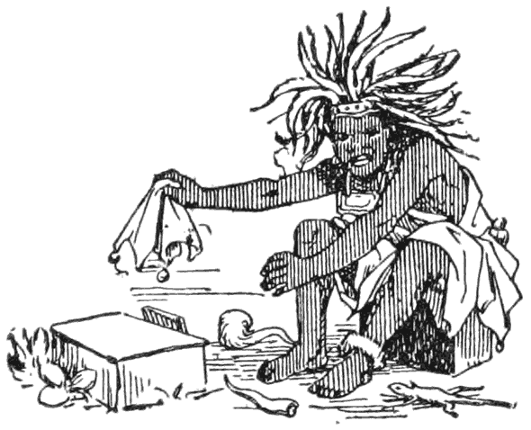 “But the dog says it was the stick; the stick declares it was the fire; and the fire says the water did it. The water denies it, and says the elephant [80]tore the cloth; and the elephant lays the blame on the ant.”