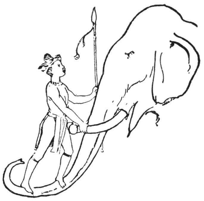 He was twelve feet high, and had legs like tree-trunks, as she had said; for Ramil’s son was nothing more nor less than a big black elephant, and that very day he had nearly been killed by Parle’s brothers.