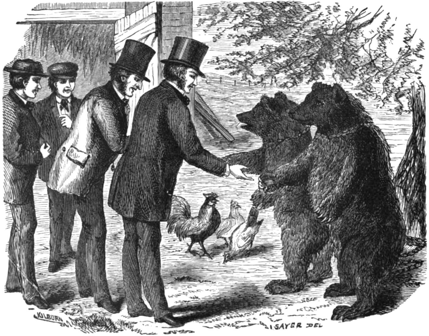 The two bears are still alive, though the fun is [311] all gone out of them. They are now grave, sedate, and dignified bears, and as such, are fit symbols of the Christian sentiment they represent. I am grateful to them for the good they have unconsciously done, and I never call them by any other names than Bear and Forbear.