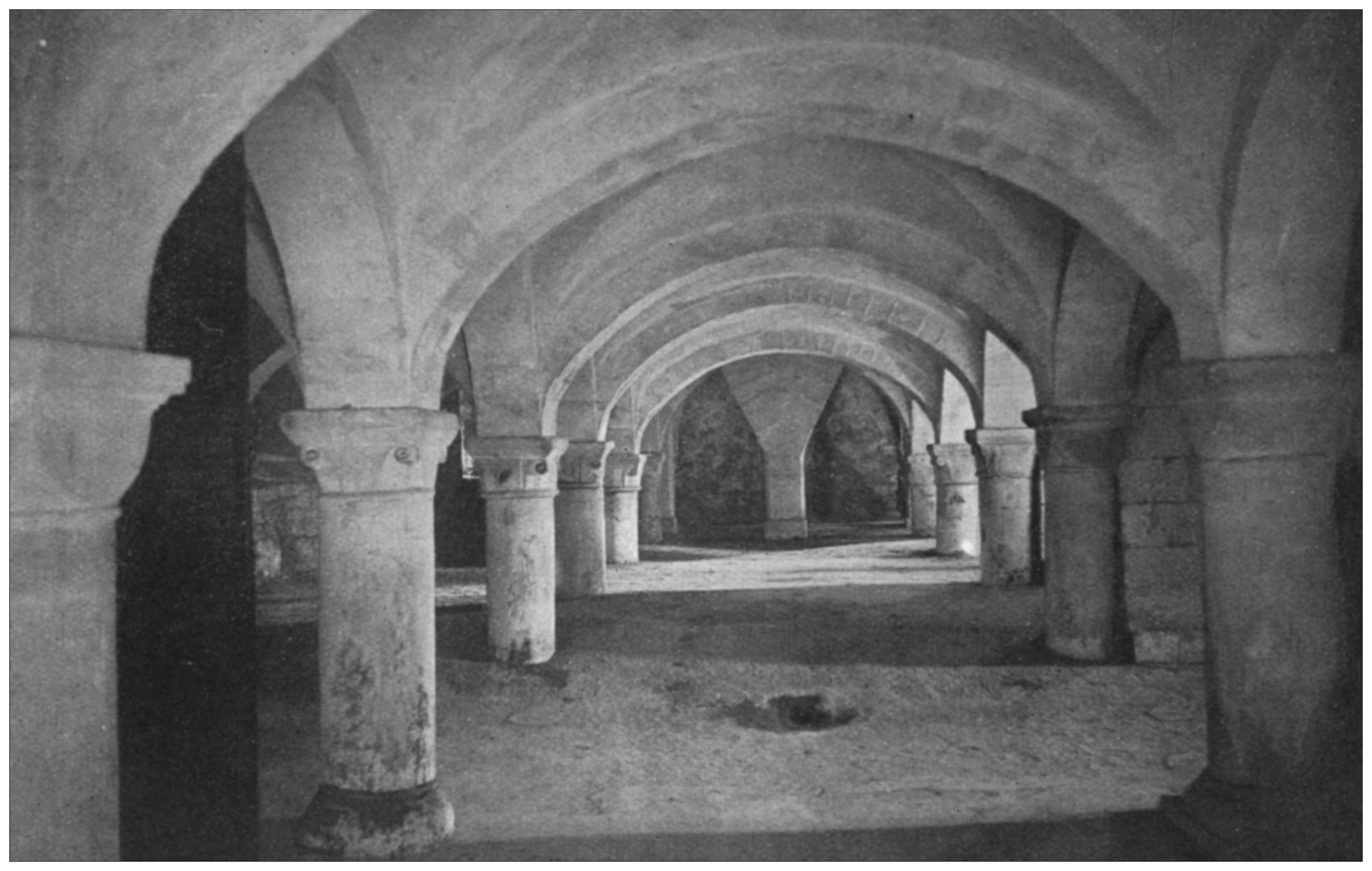The Crypt is by no means a universal feature even in Western Christendom, while in the East it is absolutely unknown. In the West, however, we frequently find a Crypt in the planning of the more important churches. The question often is put—What was its use? When and where was it first introduced? Is it not possibly “the memory” of some sacred spot once deeply revered and often visited in far-back days by tens of thousands from[x] many distant lands? Emphatically a strange mystery hangs over those dark and gloomy Crypts which sleep beneath such great churches as the cathedrals of Gloucester and Canterbury, the mighty church of Chartres, the storied abbey of S. Benignus of Dijon. The true secret of the Crypt is a thrilling story and one that goes back to the earliest days of Christianity.
