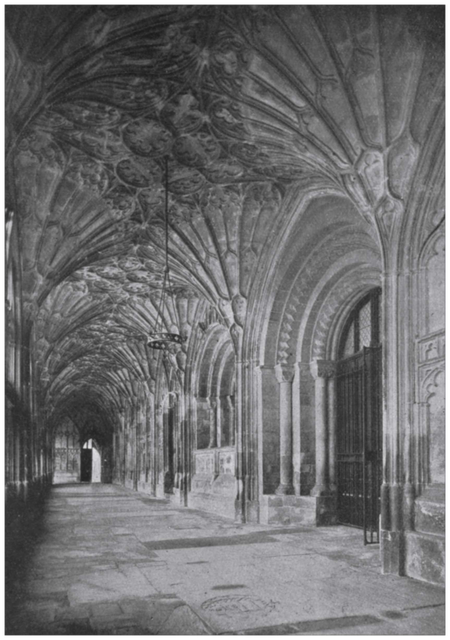 We who live in the restless evening (is it the evening?) of the world, enjoy the fruits of their labours, and gaze with pathetic interest on the comparatively few undisturbed remains of these once famous homes of learning where so much good and useful work was done. In the quiet beautiful Gloucester Cloister we possess one of these precious relics of that almost forgotten past, to which we owe so much—one of the most perfect that exists in England, perhaps in the whole of Northern Europe.