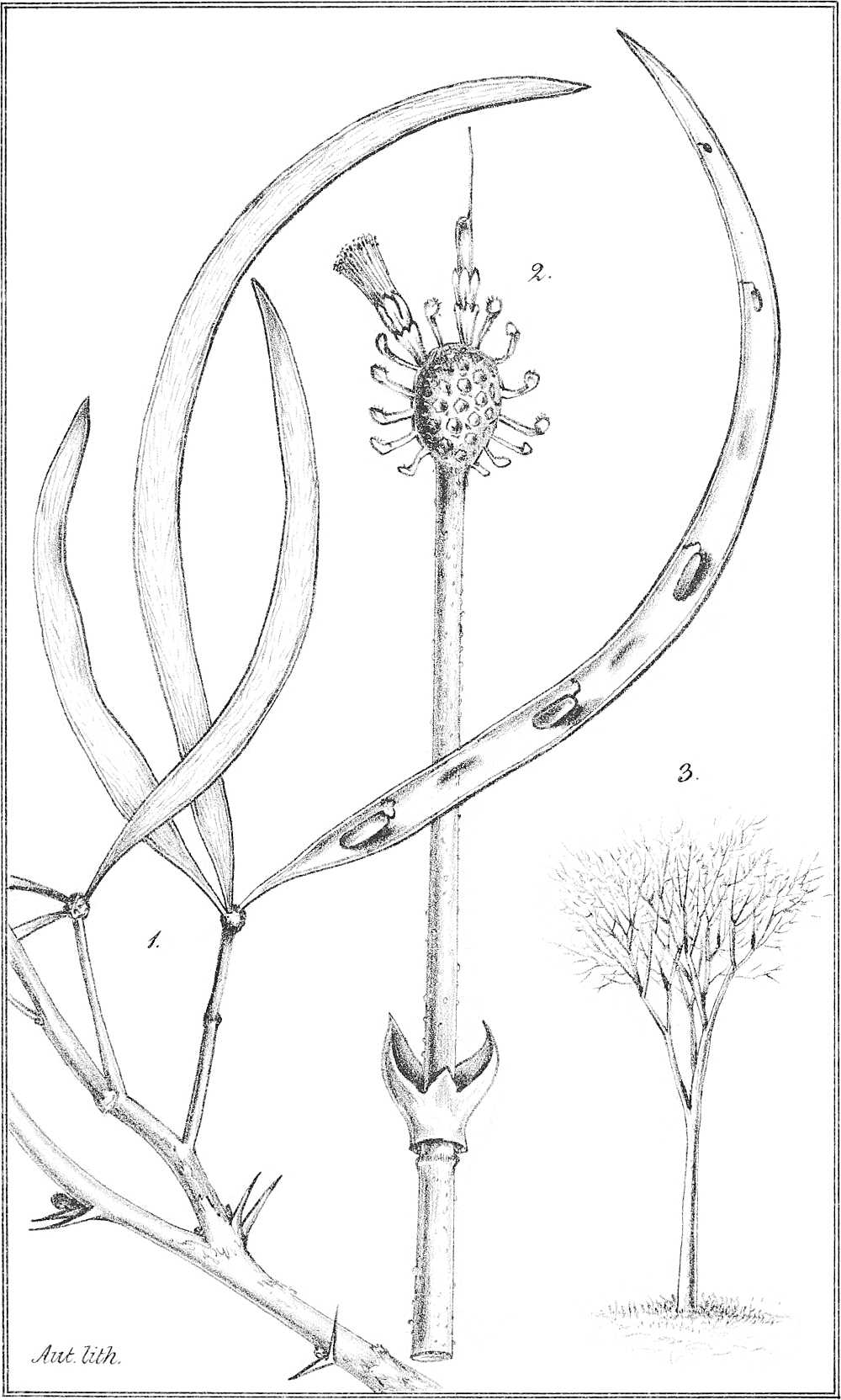 [2]Je nach den einzelnen Fällen innerhalb der Gattung können die Dornen bald als Zweige und Nebenblätter, die Stacheln bald als Theile der letzteren, bald als blosse Oberhaut-Gebilde betrachtet werden.