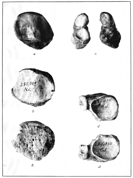 [93] S. P. Lazarus, Zur Morphologie des Fufsskelettes, Morphol. Jahrb., XXIV, H. 1, repr., 8⁰, Leipzig, 1896; W. Pfitzner, Beiträge zur Kenntniss des menschlichen Extremitätenskelets, Morphol. Arbeiten, I, H. 1, Jena, 1891; Th. Volkov, Variations squelettiques du pied chez les primates et dans les races humaines; Thèse doctorale de la Faculté des Sciences, Paris, 1905; Chas. Fraipont, L’Astragale de l’homme Moustérien, etc., 8⁰, Bruxelles, 1912; M. Reicher, Beitrag zur Anthropologie des Calcaneus, Archiv für Anthropologie, N. F., XII, H. 2, 1913; S. Poniatowski, Badania Antropologiczne nad Kóscia Skokowa (Anthropological Studies of the Talus), Prace Towarzystwa Naukowego Warszawskiego, 1913.