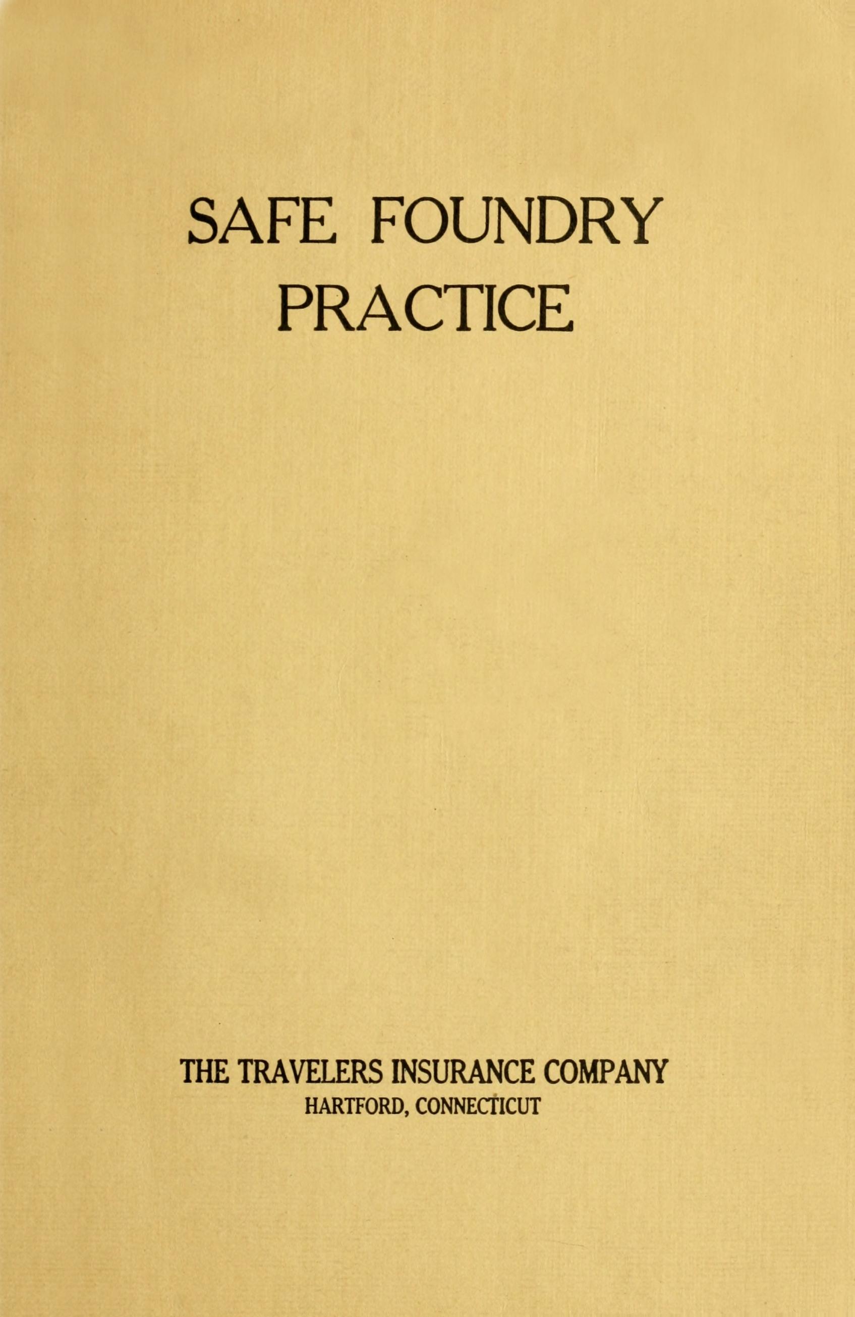 Even the best-equipped, most orderly, and most effectively organized foundry is not free from accidents, and it is too much to expect that complete immunity will ever be possible. The experience of many concerns that have adopted safety methods in their foundries shows, however, that it is possible to eliminate a large proportion of the commoner causes of accidents, without much expense and without any serious disturbance of existing conditions. The Engineering and Inspection Division of The Travelers Insurance Company, in the course of its extensive experience with foundries, has given a great deal of study to this subject, and the recommendations and suggestions that it has made in the course of its practical inspection work have been well received by foundry managers, and have been particularly effective in bringing about better and safer conditions. The present booklet, based upon this study and experience, contains some of the suggestions[Pg vi] that have been found to be most serviceable and important in dealing with the accident-prevention problem in its broader phases. Every foundry has important special safety problems of its own, which must be dealt with effectively if the best results are to be obtained; but to include all features of this kind would swell this booklet to such dimensions that its effectiveness and usefulness would be impaired. We have therefore confined our attention to danger-points of wide and almost universal occurrence.