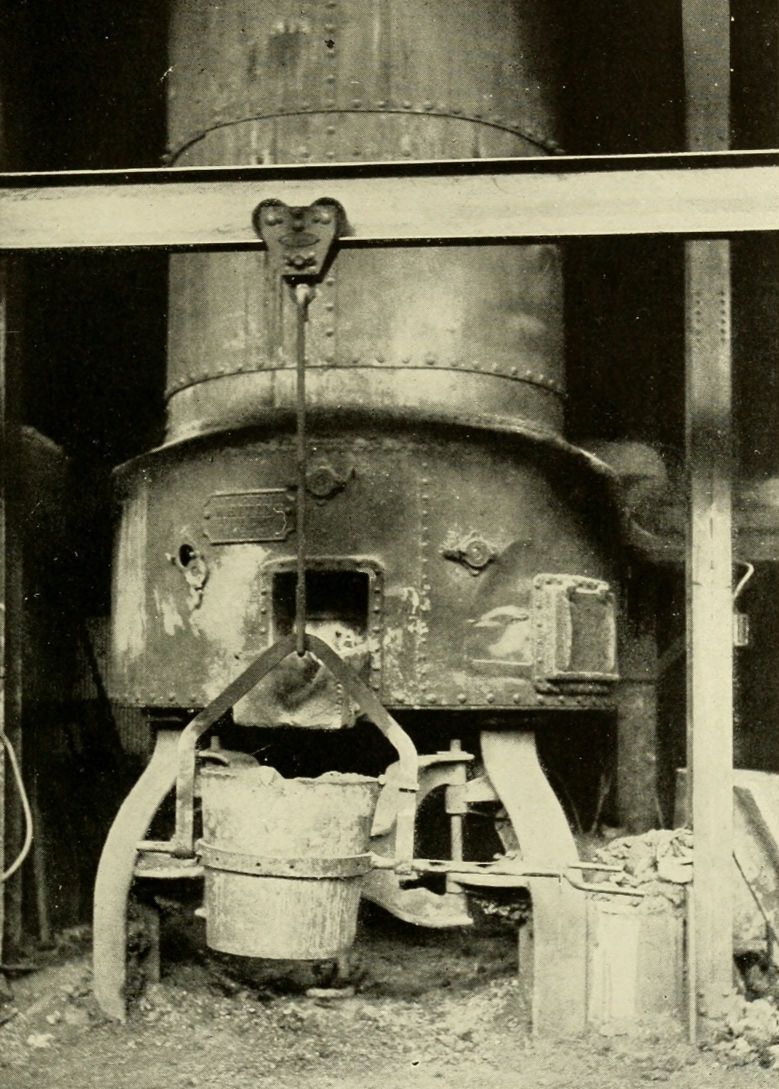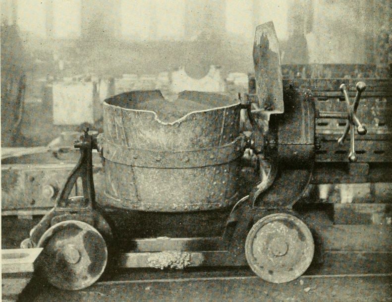 Ladles of all kinds, except hand ladles, are likely to cause accidents by tilting unexpectedly, unless the bowls are properly balanced on their shanks or trunnions, or are arranged to be locked in an upright [Pg 14]position. It is specially important to see that the bowls are not top-heavy, even when full of metal. On the other hand, if the bowls are weighted too heavily at the bottom it is difficult to tilt them, and an unnecessary strain is imposed upon the operator and also upon the gearing and other mechanism; furthermore, it is not easy to pour a smooth, continuous stream from a ladle which requires considerable exertion to hold it in the pouring position. In particular, all ladles that are provided with bails for hoisting and transporting by cranes should be so constructed that, when full of metal, the center of gravity will be well below the bail, unless they are arranged with geared devices for tilting. In addition, they should be provided with clips or clamps to prevent unexpected or accidental overturning.