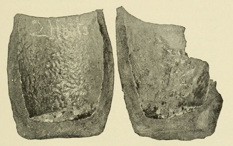 Suitable leggings are almost as necessary as good, serviceable shoes. Under some conditions safety requires that the leggings be of asbestos or leather, but for general foundry work canvas or twilled cotton of good quality may be used. These materials will meet with all but the most severe requirements. The leggings, like the shoes previously described, should be[Pg 3] fastened in such a way that they may be quickly and easily removed, and ordinary buckles are therefore unsuitable. Laces and buttons are likewise unsatisfactory, and any type of fastening that forms projections upon which molten metal may lodge does not afford the best sort of protection. Flat spring clasps, properly inclosed, at the top and bottom of the leggings, are the most satisfactory type of fastening devised up to the present time. The leggings should completely incase the legs from the knees down, and should fit snugly, especially at the top, to prevent the entrance of molten metal at this point.