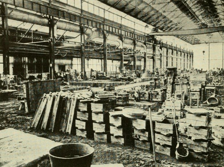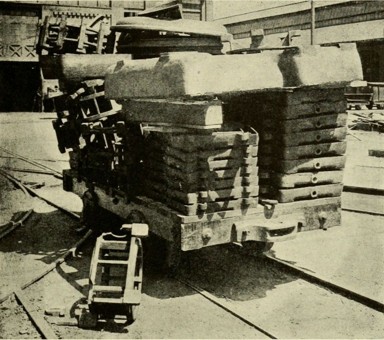 The fact that orderliness and system promote safety is probably nowhere better exemplified than in a large foundry yard. The maintenance and cost of a foundry yard is small as compared with that of the foundry itself, and it is good economy, therefore, to use the yard as much as practicable for the storing of scrap, sand, flasks,[Pg 59] finished product, raw materials, and miscellaneous supplies; but the maximum efficiency and economy cannot be realized unless the yard is kept in a neat and orderly condition. If a yard is just large enough to meet the needs of a foundry, and is not used to its full capacity, it usually follows that the foundry floor space is littered with material that could be stored in the yard more advantageously; and the crowding of the foundry floor increases the number of accidents, many of which might be eliminated if the yard were utilized to better advantage. This is specially true of a foundry where every available foot of floor space is required for production. In this class belongs the “jobbing foundry,” in which work of a miscellaneous nature is done, as distinguished from the “repetition foundry,” in which the work consists mainly in the continuous reproduction of certain standard stock patterns.