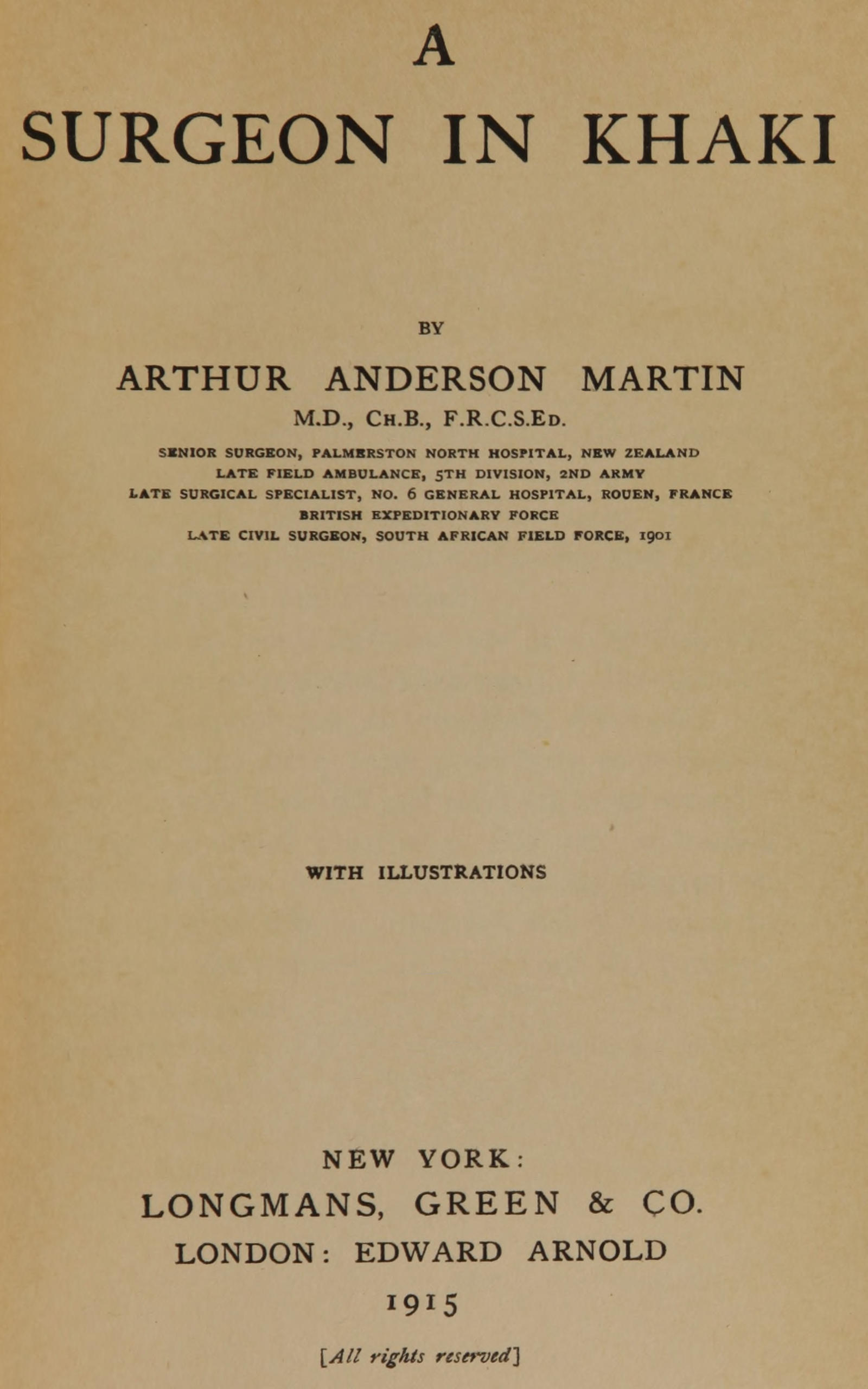 All of the American and German-American doctors [2]wore the ribbons on their coats, but I put mine in my pocket as a curio. I did not wish to be thought to have German sympathies, although I had drunk their lager beer. In New Zealand the Germans have never been appreciated as they have been in England. Perhaps the air of the Pacific gives one a truer perspective of some things as they are.