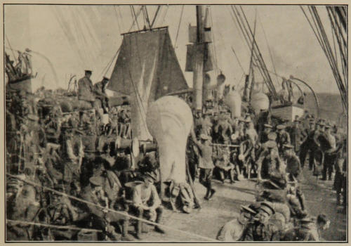 On one winter day in Rouen, just after a heavy fall of snow, a company of French soldiers under a non-commissioned officer was marching past the Indian encampment. The Indians lined up the fence alongside the road and bombarded the French with a rapid fire of snowballs. The French looked surprised, [275]and, forgetting discipline but still keeping their ranks, poured a heavy fusillade of snowballs on the men of India. The incident is illustrative of the good feeling that exists between the French and their Indian allies.