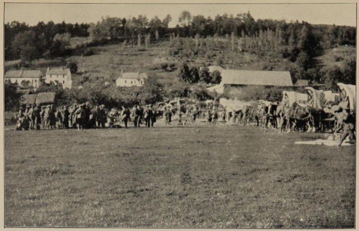 Madame, by the way, was very amiable when we told her that we were to leave. She did not say that she was sorry, but she no longer screeched at our cooks or railed at our men for eating her straw. Just as our ambulance was about to move off, and Madame stood at the door with the first approach to a frosty smile that we had ever seen on her face, a French sergeant and ten men of a balloon section arrived. The sergeant had a lump of chalk in his hand and scrawled on the door, “Ballon. 3 sous Officiers. Hommes x.” He brusquely informed Madame that the quarters just vacated by us were to be at once taken by his balloon section. Madame raged and raved, but the sergeant was imperturbable, and suddenly quietened Madame by saying that if she objected very much he would begin to think that she was a German spy. The sergeant told us that as a matter of fact they were not satisfied about Madame’s husband’s patriotism. We knew that [266]Madame and her sulky husband would now have a much worse time than when we occupied the house, for at least we tried to give little trouble, and lavishly paid for any vegetables, milk, or food that we got from the farmer. The French insist on the “articles of war,” and when they occupy a house they really do occupy it and make themselves very much at home.
