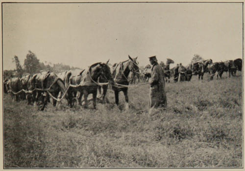 On the march from the Marne to the Aisne, and on the Aisne itself, women were to be seen doing ordinary farm work—building stacks, carting in the wheat, driving waggon-loads of hay and peas, milking the cows, making cider and butter, tilling the soil,—and tending the children into the bargain.