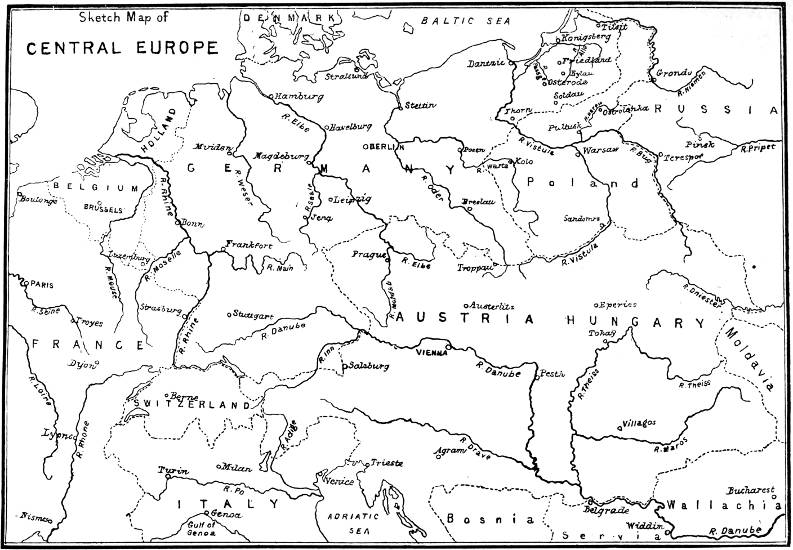 Russia was next assailed. Semi-barbarous at the time, that State was in the throes of revolution brought about by the extinction of the House of Ruric; and a project was actually on foot for her dismemberment, one half to go to Sweden, the other to Poland. But Muscovite patriotism defeated its execution. Michael Románoff was, in 1613, elected Tsar. Gustavus at the same time landed in Esthonia, but effected little beyond the capture of Gdoff, and in 1617 concluded peace, again through the good offices of England. The Thirty Years’ War was looming in the distance; the diplomacy of the Protestant Powers tended towards a union against the Papacy. Thus both dynastic and religious considerations recommended an attack on Poland to the judgment of Gustavus. Sigismund III., her king, was both a bigoted Catholic and the rightful though dethroned King of Sweden. Nothing could be effected in Germany leaving such an active and embittered foe in flank and rear. At first the King operated from Riga as a base, with the Dwina as his line of operations; but experience soon taught that, to effect his purpose, he must strike vigorously home at the heart of the adversary’s power. The theatre of war was therefore transferred to West Prussia, then directly subject to Poland, where he proceeded to establish a solid base on the coast, by making himself master of the fortresses of Frauenburg, Elbing, Marienburg, Stuhm, Mewe, Dirschau, and Oliva. Dantzig was besieged to facilitate communication with Sweden and, in this case, the line chosen by him for an eventual advance into the interior was the river Vistula. In all of his campaigns we find Gustavus keeping up his communications with the coast by means[4] of a great river; he lived in times when railways were not dreamt of and even roads could scarcely be said to exist. A commodious port on the Baltic was also necessary for safe communication with Sweden, and to serve as a depôt for stores. Thus his strategy was far in advance of the practice of his renowned successors Charles X. and Charles XII., who, great soldiers as they were, relapsed into pre-Gustavus methods, though they had both the King’s example and that of Turenne before them.