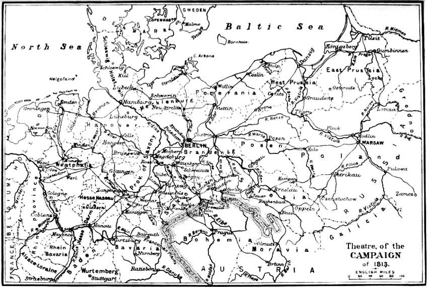 [19] Owing to the losses of the French by disease, desertion, and defection, it is impossible to determine, even approximately, the numbers of the Grand Army in this part of the campaign. Those of the Allies are better known; but patriotism and pride have tended to make them smaller than they were.