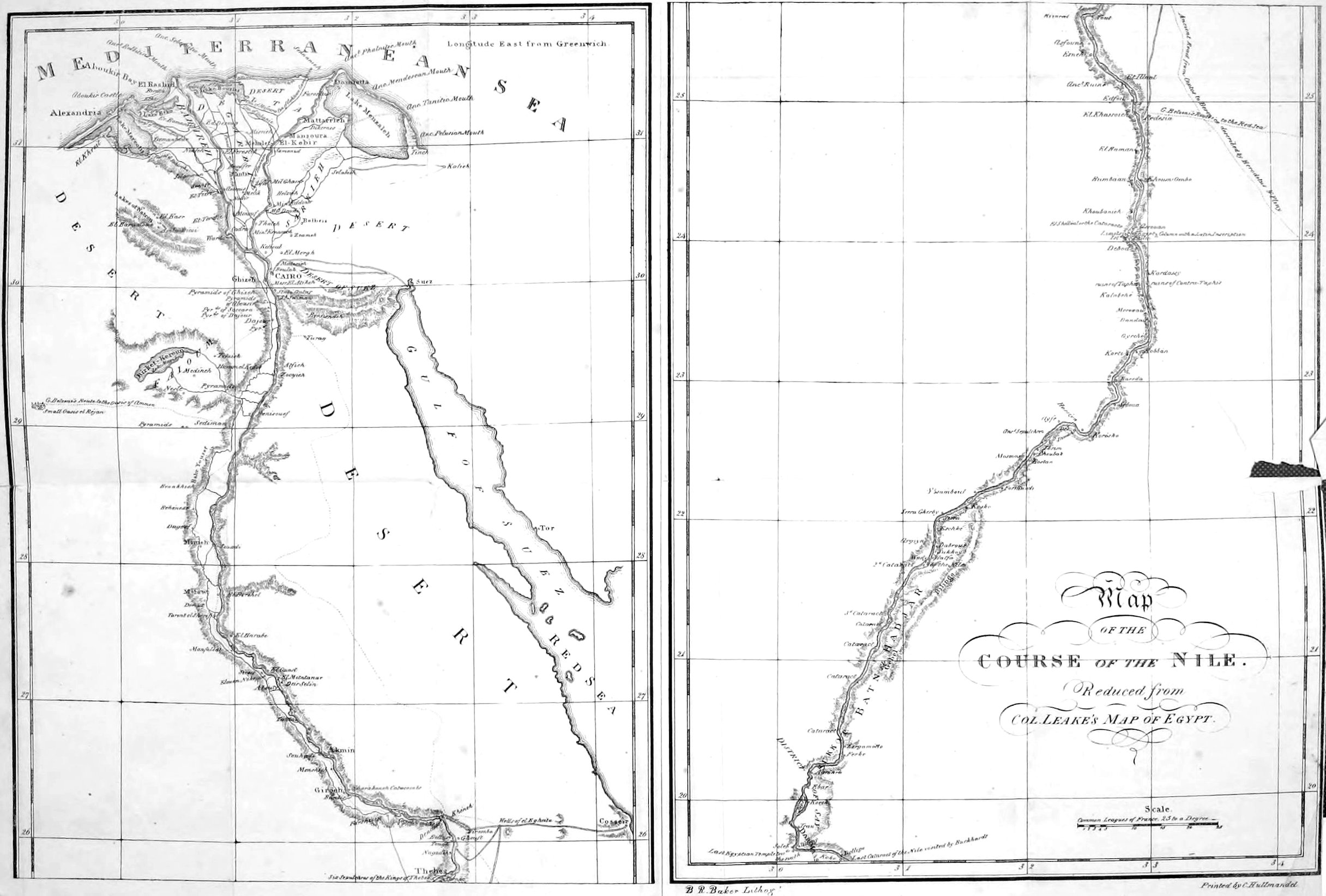I had the pleasure of accompanying the Colonel in a visit to the pyramid, as described 437by himself in his account of his journey from India to England through Egypt. He had suffered many hardships on his journey, but did not appear fatigued in the least. His short stay in Cairo did not permit me to write a full account of my labours; but at night I made a hasty sketch as well as I could, and addressed it to the Antiquarian Society of London, which he was kind enough to take to England for me. Mr. Salt, the consul, took the same opportunity of sending an official account of my operations in Egypt and Nubia to the ministers in England, I suppose because he had no opportunity of sending any correct account before that time.