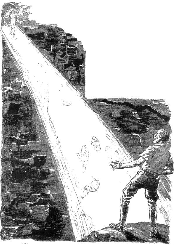 But Itza had no such fears. Swiftly she embraced King Azcopil, she threw her arms about Nohul Voh and planted a farewell kiss upon his cheek, and with a merry laugh and a wave of her hand stepped confidently from the verge of the rock. My heart skipped a beat, I uttered an involuntary cry as she did so. It seemed impossible that she would not be dashed to death in the abyss. But no. She might have been treading solid metal. Lightly she ran forward, calling me to follow. With a last clasp of my hand I stammered farewells to my two friends, and with gritted teeth and summoning all my courage, I stepped onto the incredible bridge and hurried after Itza.