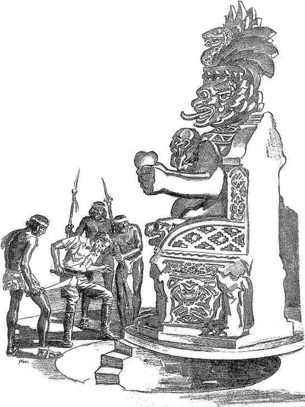 When dealing with Indians, delays are dangerous, there is nothing like striking while the iron is hot, and, as Itza prattled on—her sentences punctuated by kisses—I was delighted to learn that the new king had already asserted his authority in the right direction. He had announced that with the beginning of his reign, Kukulcan should be the paramount god of Mictolan. That the people would be free to worship Kinich Ahau and that the priests of the Sun God’s cult might hold their ceremonies in their temple, but that all the old practices were at an end. There should be no secrets within it. It must be open to the public. No human sacrifices of any sort should be held.