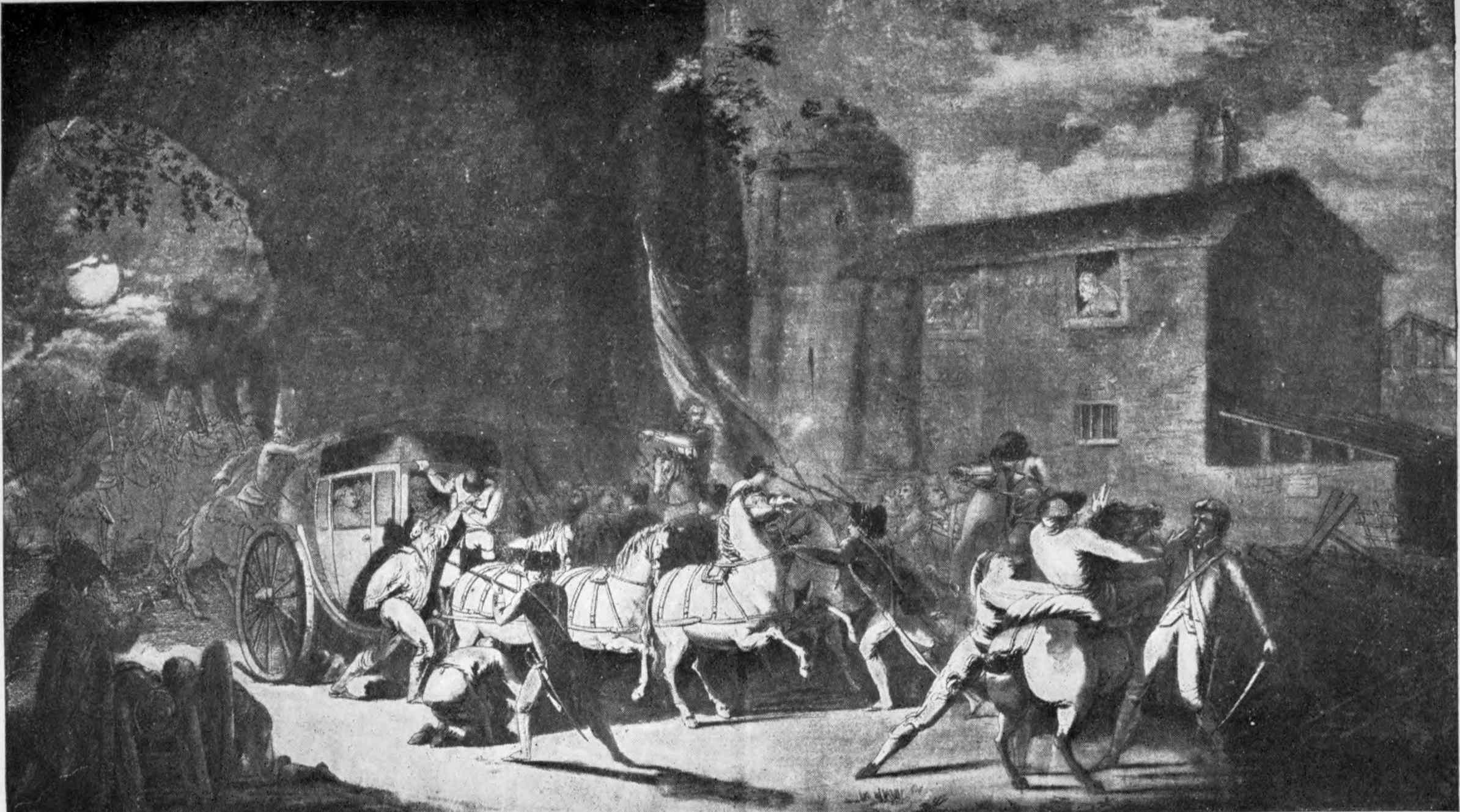 To the gates of that great country house there came near ten o’clock, just after the hour when full darkness falls on a midsummer evening, a great coach, driving from Versailles. It was the coach of the Archbishop of Paris, coming urgently to see{16} the king, and the day was Friday, the nineteenth of June, 1789. They were in the full crisis that opened the Revolution. The tall windows of the palace were fully lit as the coach came up the drive. The night air was cold, for those June days were rainy and full of hurrying cloud. The Archbishop of Paris and his colleague of Rouen, who was with him, were summoned by their titles into the room where Louis XVI sat discussing what should be done for the throne.