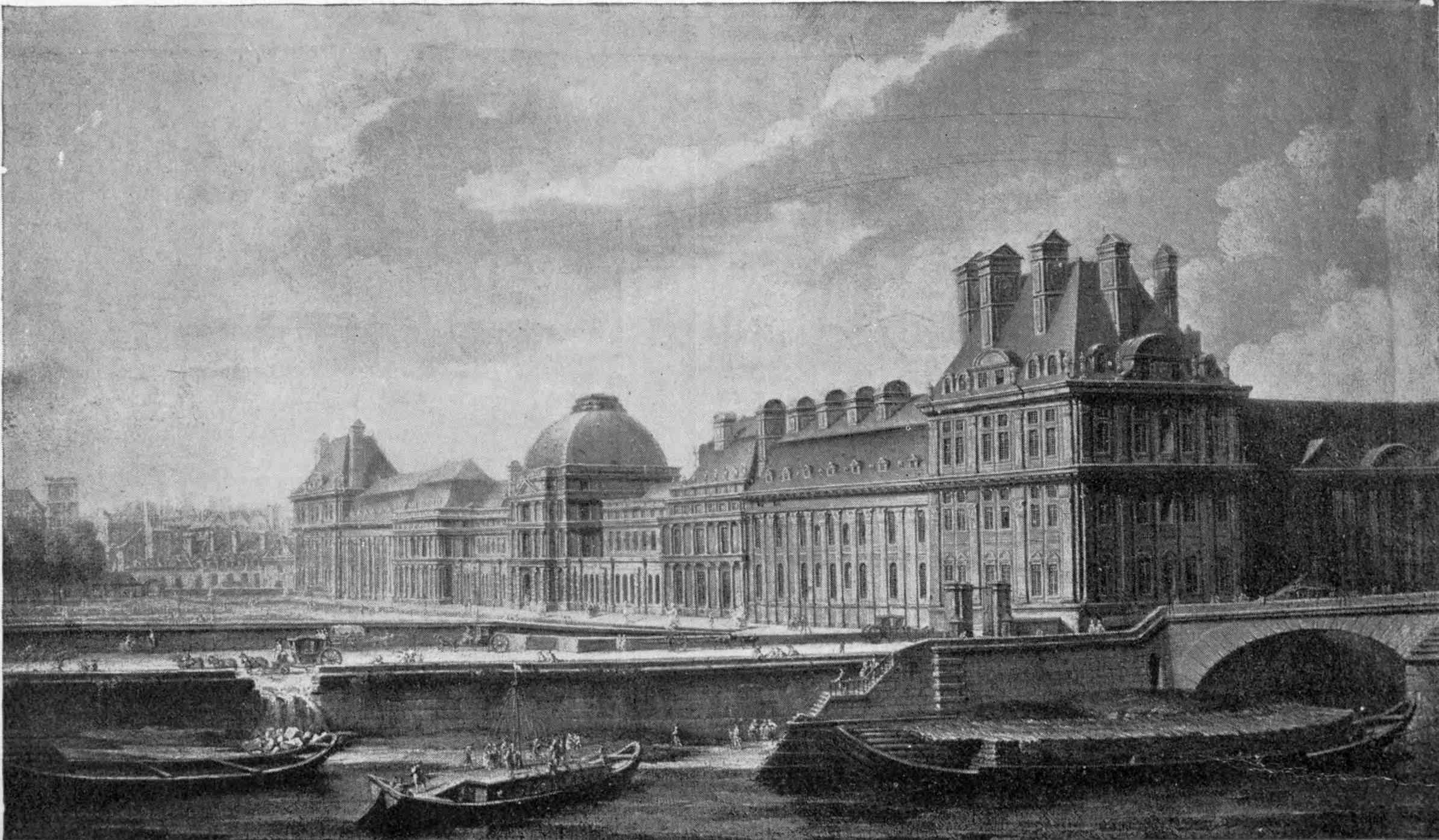 That large hall had its main entrance upon the new wide, bare Avenue de Paris, with its sprigs of trees. Years before it had been built to house the rackets and the tennis nets, perhaps the scenery of plays—all the material of the lesser pleasures of the court; for which reason it was still called the “Menus-Plaisirs,” that is, the “Petty Pleasures.” It had stood for some forty years, and the things to be warehoused had come in by its principal opening upon this great main road.