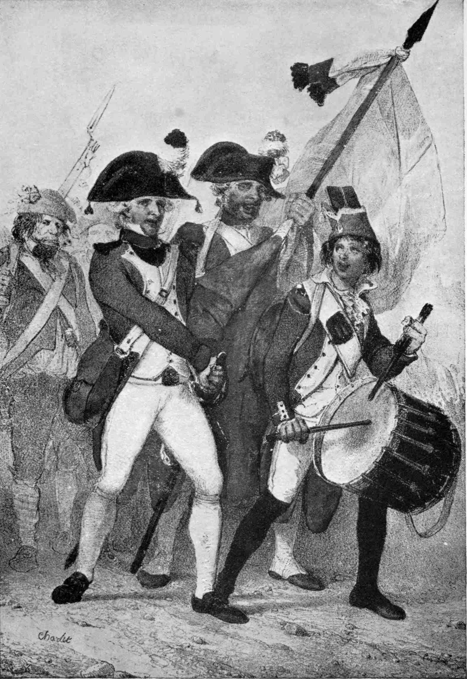 While the popular forces were gathered in Paris for that assault on the palace which proved so successful, the Prussian and Austrian army of invasion, under the command of the Duke of Brunswick, was marching against the French by the valley of the Moselle. It was accompanied by many of the French nobles who had emigrated, and who desired by any methods, even those of foreign invasion, the destruction of the Revolutionary movement. We have seen how Lafayette had the supreme opportunity of meeting that invasion and had refused it. The frontier was not crossed until some days after the palace had fallen, and after Lafayette had abandoned his army. The invasion was immediately successful. The frontier fortress of Verdun fell. The French forces were largely composed of unreliable volunteers. The regulars themselves had been badly demoralized, and the French army under General Dumouriez, whose task it now was to stop the invasion, lay upon the line of the Argonne, not a week’s march from Paris, with very little hope of defending that forest-ridge successfully. But by one of the strangest accidents in history, under this army when Dumouriez, had been successfully turned by the{170} invaders and was in its most desperate plight, an action fought near the village of Valmy changed the whole story of Europe. The result of this action, which was in a tactical sense indecisive, and in which the opposing forces never came to close quarters, was that the invading army was checked in its career, was ultimately bound to retire, and the Revolution was granted just the time it required to raise and discipline new forces for the meeting of further invasions which were bound to follow. This action at Valmy, which, despite its indecisive tactical quality, was one of capital importance in the history of the world, was fought almost coincidently with the declaration of the Republic. On this same ground—a cannon-shot to the North—France and Germany to-day[A] stand opposed.