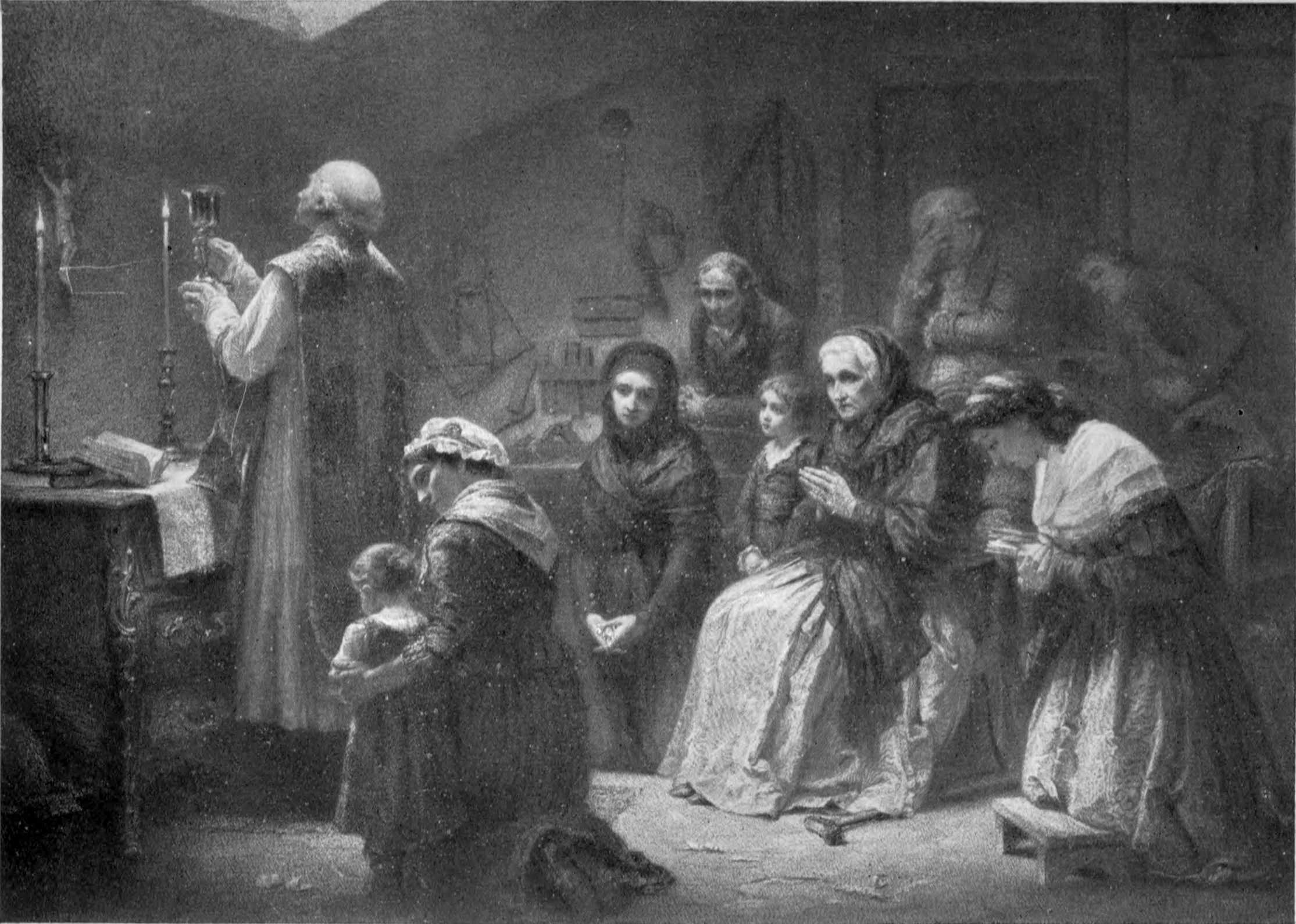 He stood. The women passed out with weak knees (it is said that the girl was half fainting). The oaken door shut behind them, and the iron door outside it clanged to. He heard their soft steps, slow and creaking, mounting the winding stone stairs without. Then they were lost, and he was in silence. He prayed a moment and then lay down to sleep. He slept deeply till five in the morning. The men bringing in the vessels for a Mass awoke him. He rose and prayed.