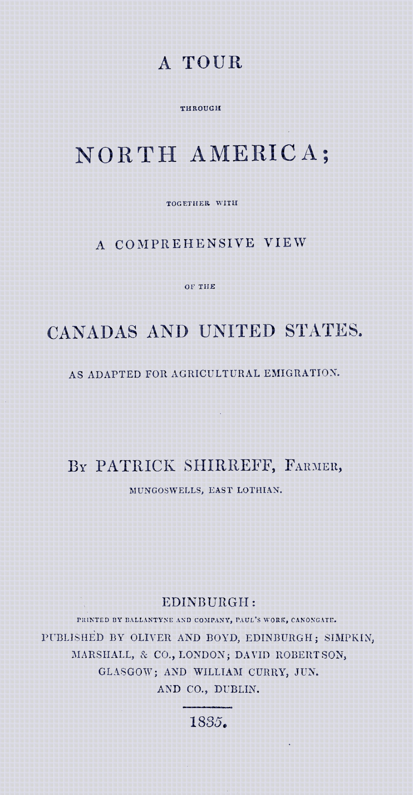 It has been said that I was appointed by a party of East Lothian farmers to visit and report on the Canadas and the United States; but nothing could be more unfounded. A younger brother having expressed a wish to try his fortune as an American farmer, I resolved to explore the country for the purpose of enabling me to give an opinion on the step which he contemplated. With this single object in view, my Transatlantic excursion was originally planned, and afterwards performed, unfettered and unassisted by any party whatever.