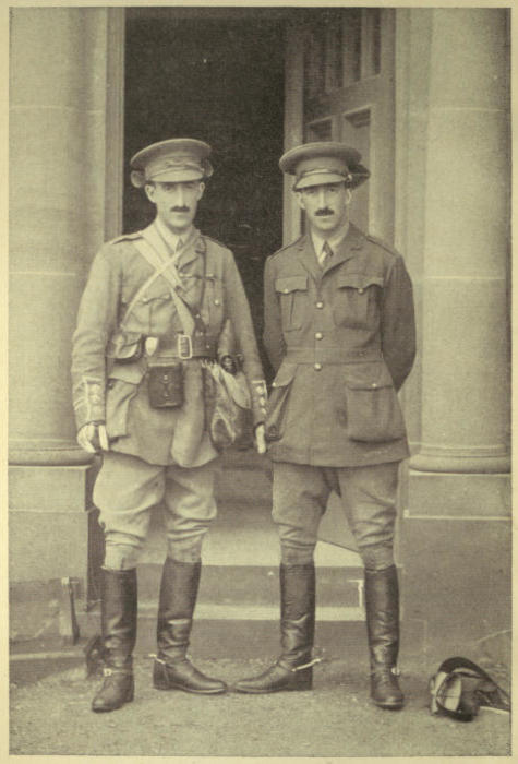 I never heard that Francis was musical, and he was about as tremulous as a brick wall. But he was always most sensitive to impressions, and in both the Twins a vein lay hidden of unspoken poetry. They now entered upon the struggle with a kind of awed and hushed expectation. It had long been at the back of their minds, and consciously and [187]unconsciously they had been preparing for it. This little book is not a war memoir, for only a fraction of the Twins’ lives fell under the great shadow—for Rivy about five weeks, and for Francis less than ten months. But, looking back, the war seems to have been always a part of their outlook. Both had the standpoint of the regular soldier; neither suffered the hesitations and divided impulses of the less fortunate civilian. But their outlook in one sense was not the common professional one—of the man who looks forward to the practice of an art in which he has been trained. Coming, as it did, to relieve them from their perplexities, the crisis seemed to them to carry with it a solemn trust, which they undertook with willingness, indeed, but with something of the gravity of those who feel themselves in the hands of destiny.