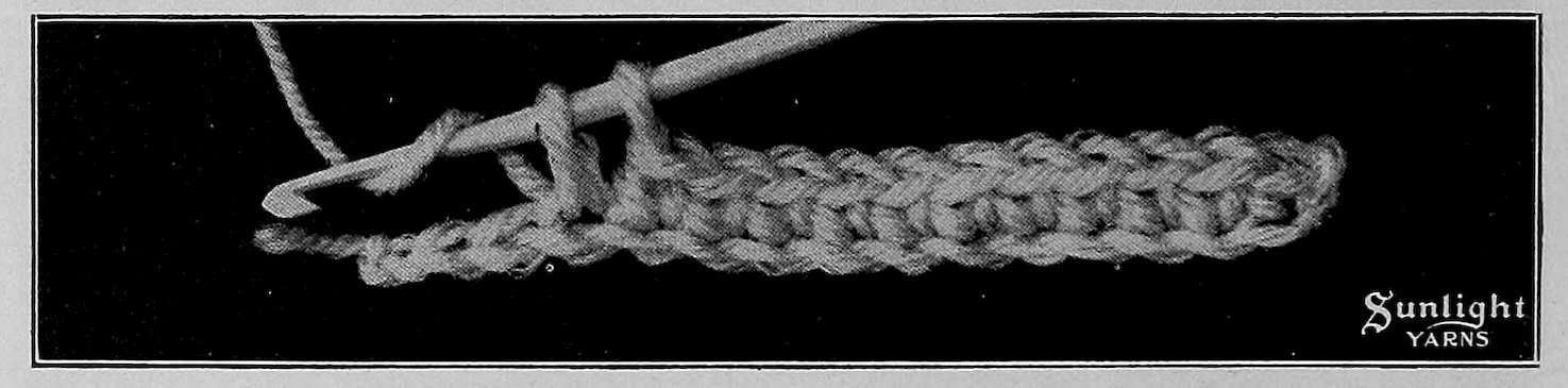 Work 1st row in the single crochet; then make 1 chain and turn.