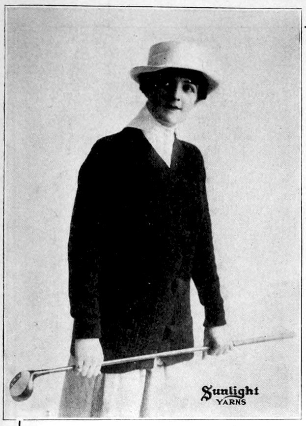 SUNLIGHT Golf Yarn is a four-ply, lofty yarn of hard wearing quality, made in a line of heather shades and brilliant colorings, especially suitable for golf jackets, stockings, toques, children’s sweater coats, caps, etc.