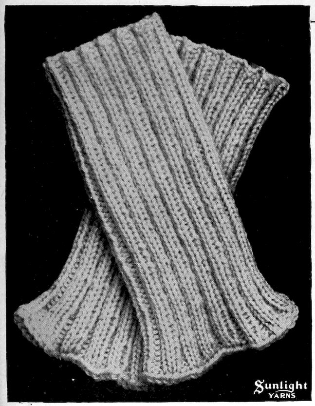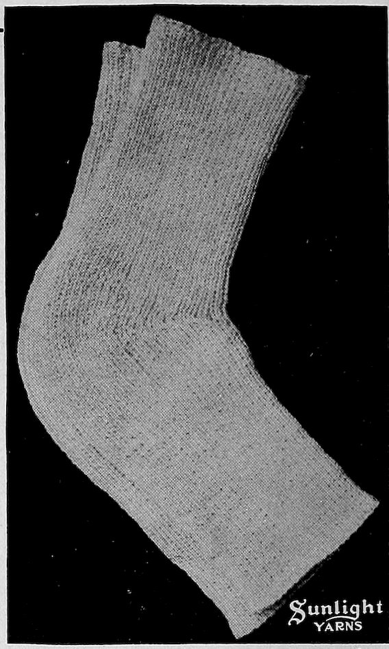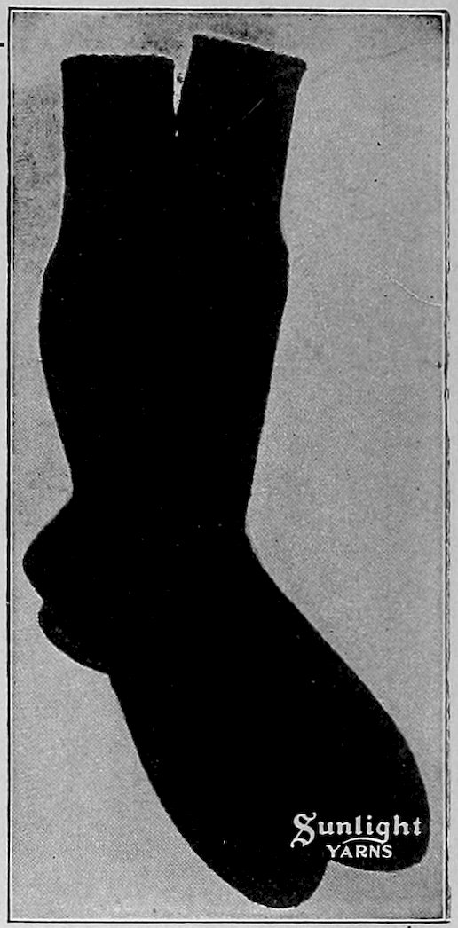 SUNLIGHT Spanish Worsted—four-ply—is made of a special selection of fine, hard wearing wools. It is spun into a finer thread than the German Knitting Worsted, is used for much the same purposes, but is particularly adapted for knitting gloves and mittens, men’s socks, women’s stockings, sweaters, etc. Sunlight Spanish Worsted is made in a complete line of colors and mixtures.