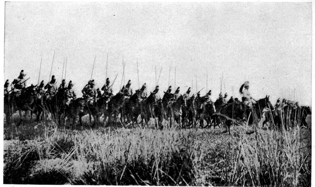 When the Ministry of War had reluctantly issued me the little yellow card, with my photograph pasted on it, which, so far as this war is concerned, is the equivalent of Aladdin’s lamp and the magic carpet put together, and I had become for the time being the guest of the nation, my path was everywhere made smooth before me. I was ciceroned by a staff-officer 4in a beautiful sky-blue uniform, and other officers were waiting to explain things to me in the various divisions through which we passed. We travelled by motor-car, with a pilot-car ahead and a baggage-car behind, and we went so fast that it took two people to tell about it, one to shout, “Here they come!” and another, “There they go!”