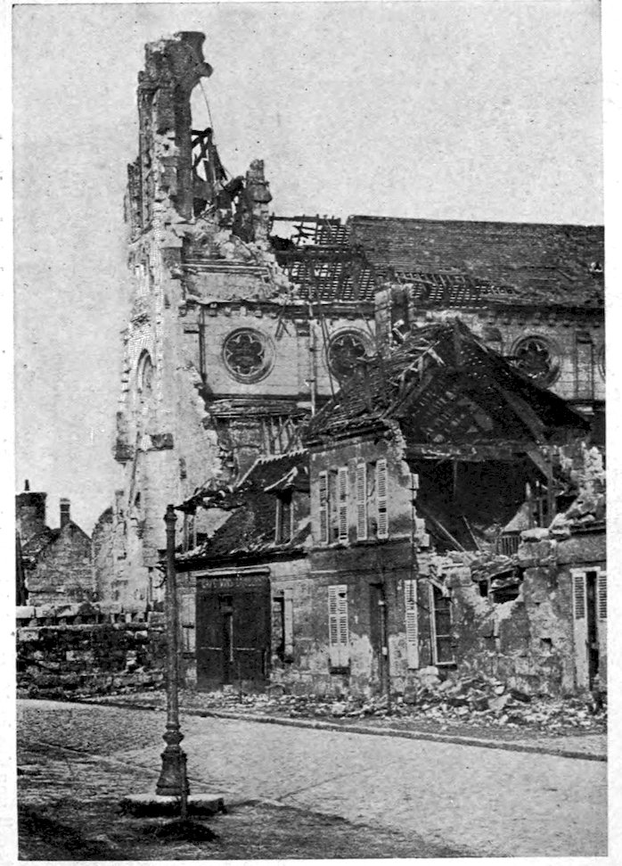 Leaving Paris, white and beautiful in the spring sunshine, behind us, we tore down the historic highway which still bears the title of the Route de Flandre, down which countless thousands of other men had hastened, in bygone centuries, to the fighting in the north. The houses of the city thinned and disappeared, and we came to open fields across which writhed, like monstrous yellow serpents, the zigzag lines of trenches. The whole countryside from the Aisne straightaway to the walls of Paris is one vast network of trenches and barbed-wire entanglements, and, even in the improbable event of the enemy breaking through the present line, he would be little better off than he was before. The fields between the trenches were being ploughed by women, driving sleek white oxen, but the furrows were scarcely 5ever straight, for every few yards they would turn aside to avoid a turf-covered mound surmounted by a rude cross and a scarlet kepi. For half a hundred miles this portion of France is one vast cemetery, for it was here that von Kluck made his desperate attempt to break through to Paris, and it was here that Joffre, in the greatest battle of all time, drove the German legions back across the Marne and ended their dream of entering the French capital. We whirled through villages whose main streets are lined with the broken, blackened shells of what had once been shops and dwellings. At once I felt at home, for with this sort of thing I had grown only too familiar in Belgium during the earlier days of the war. But here the Germans were either careless or in a hurry, for they had left many buildings standing. In Belgium they made a more finished job of it. Nothing better illustrates the implicit confidence which the French people have in their army, and in its ultimate success, than the fact that in all these towns through which we passed the people were hard at work rebuilding their shattered homes, though the strokes of their hammers were echoed by the sullen boom of German cannon. To me there was something approaching the sublime in these impoverished peasants turning with stout hearts and smiling faces to the rebuilding of their homes and the retilling of their fields. To these patient, toil-worn men and women I lift my hat in respect and admiration. They, no less than their sons and husbands and brothers in the trenches, are fighting the battles of France.
