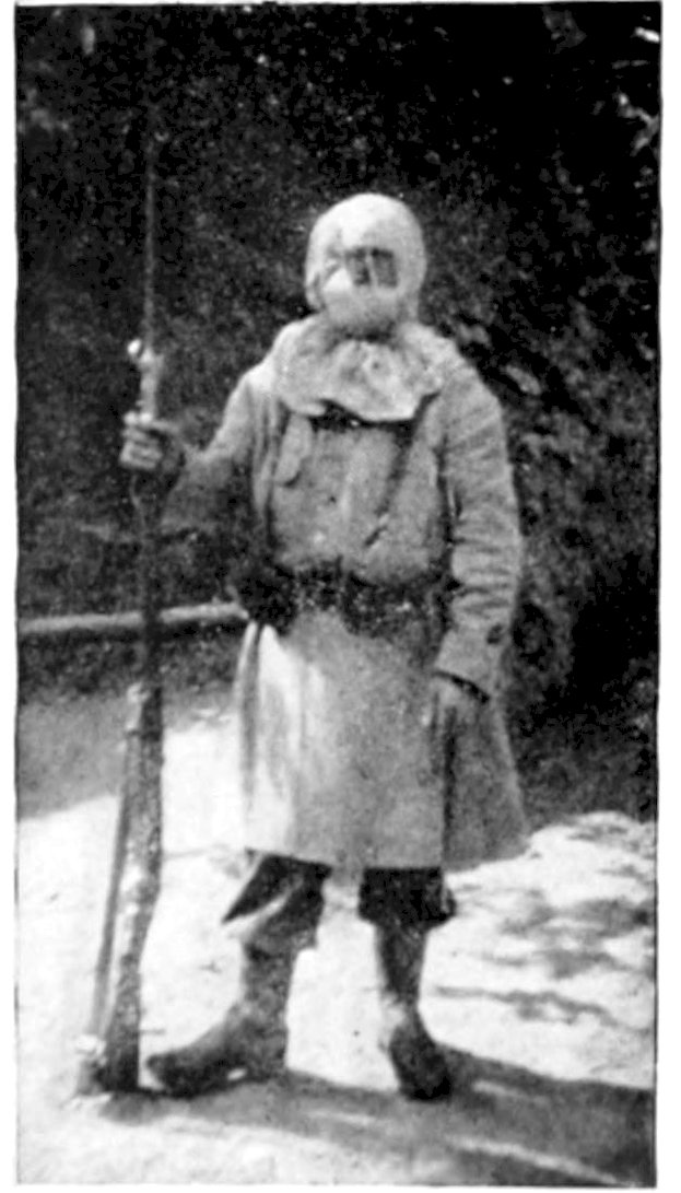 | Machine-gun squad wearing masks as a protection against the asphyxiating gas with which the Germans precede their attacks | 84 | |