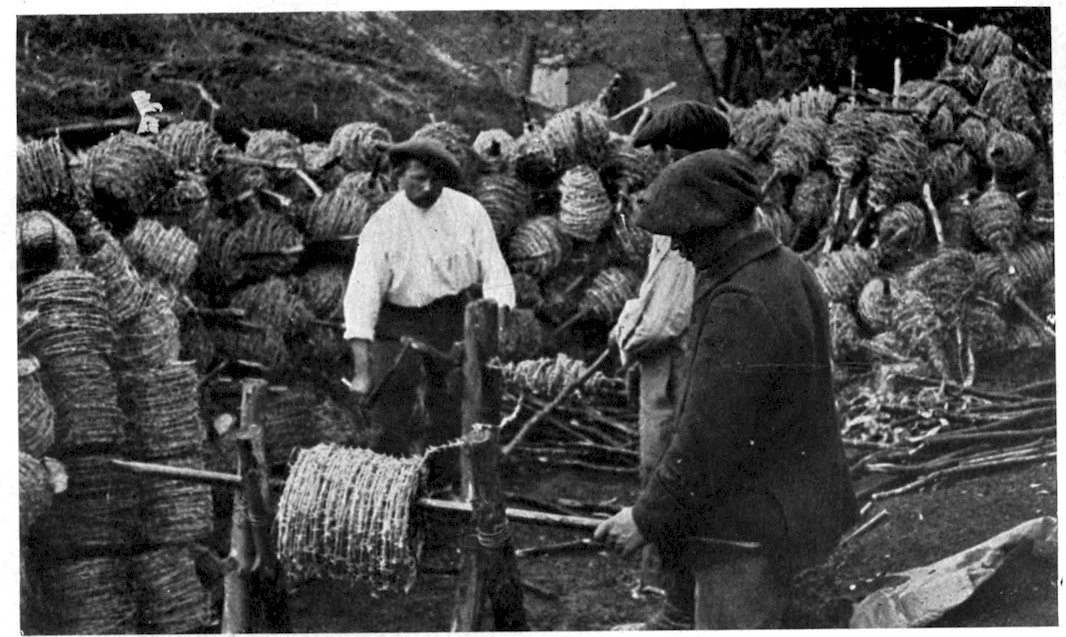 “Men were at work rolling up the barbed wire in the captured German entanglements.”