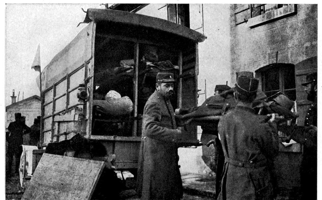 Unloading wounded at a hospital in northern France.