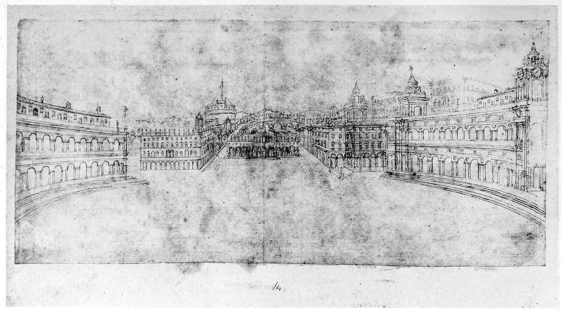 16. In the Brandegee Collection. It was published by Signor Busiri-Vici in his work La Piazza Vaticana, Rome, 1890, and by Fraschetti, op. cit., p. 307. The latter gives reduced and poor reproductions of the drawings. We have thought it worth while therefore to reproduce them on a larger scale; see Part III of this Study.