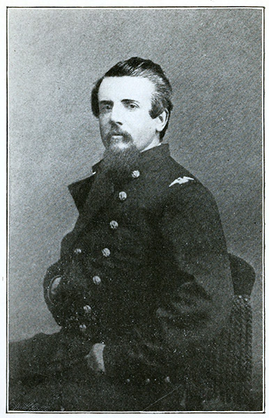 The grey coats, flushed with success that is so near victory, came gaily on. We wait until they are within easy range. It is a weary waiting and hard to endure. Our men are falling rapidly under the fire of the advancing foe. My favorite mare drops dead with a ball through her gentle heart. Adjutant Brewer, always alert and devoted replaces her with his good grey. Rising from the ground, with no great bodily harm, although I had been pitched headlong, I exclaim: “But, Adjutant, my glasses are broken into many bits and I see dimly.” “Never mind; I will see for you,” he quickly responds. And so he did. Gallant fellow! Brave heart! He gave his young life to his country and his parting benediction to me [Pg 17]afterwards, in a desperate mêlée and fearful charge.